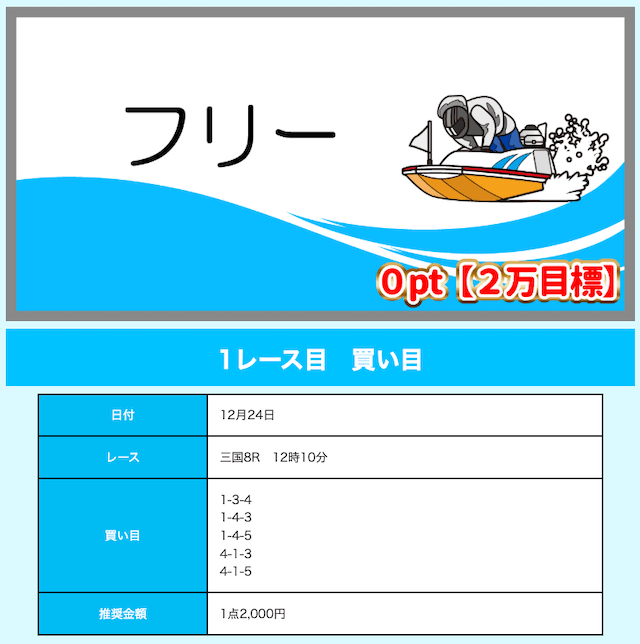 | 2024/12/26 ブルーシップ 情報料金+舟券代 30,000円+10,000円 |