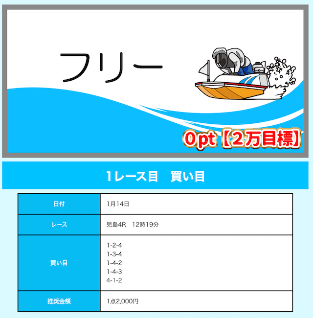 - 無料予想で5点以内とかザラ。点数が少ない分、的中した時の回収率が高くて地味にありがたい。投稿日:2025/01/12