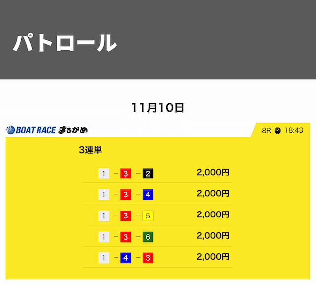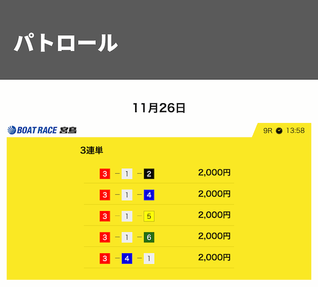 ところが競艇サバイバーは1号艇ではなく3号艇を頭、6号艇以外をヒモにした予想を公開。