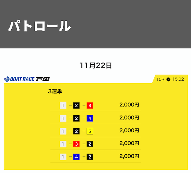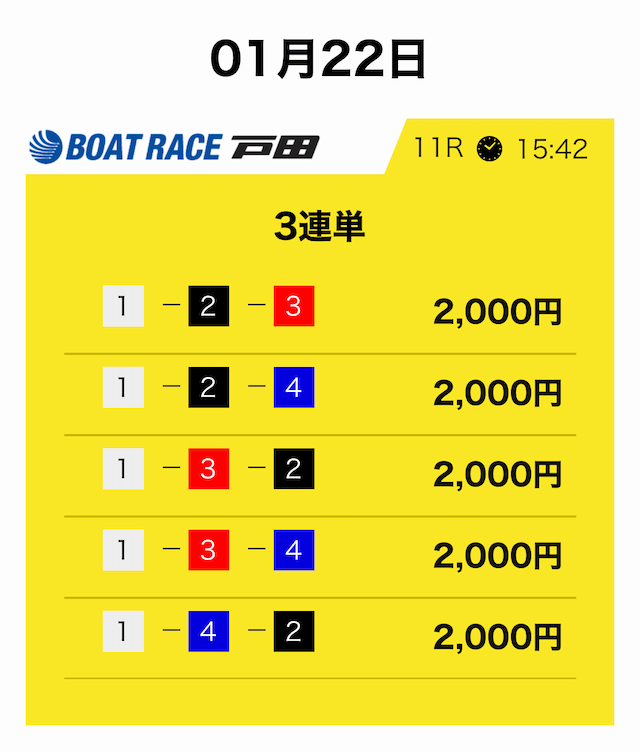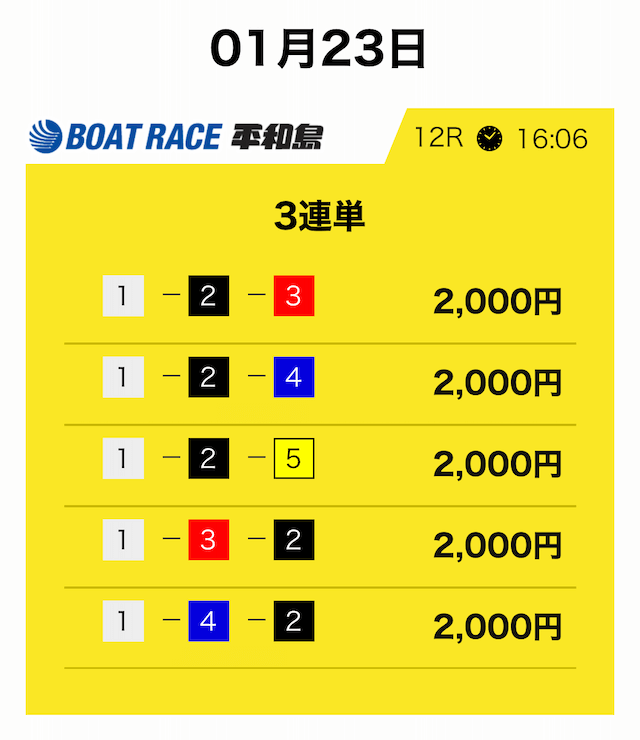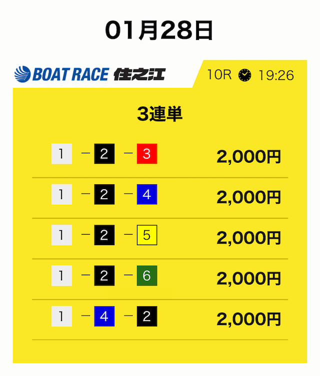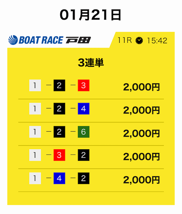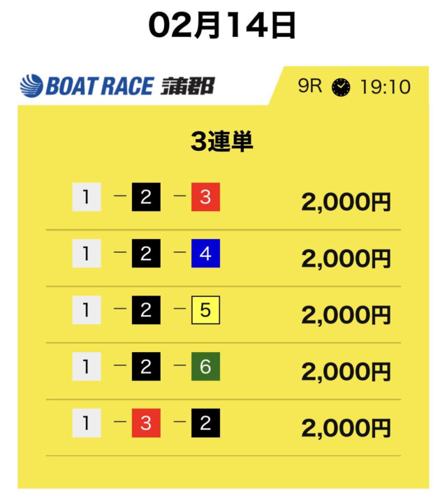 加えて、中穴の2号艇が絡んだことで62,200円とそこそこの払戻を獲得!
