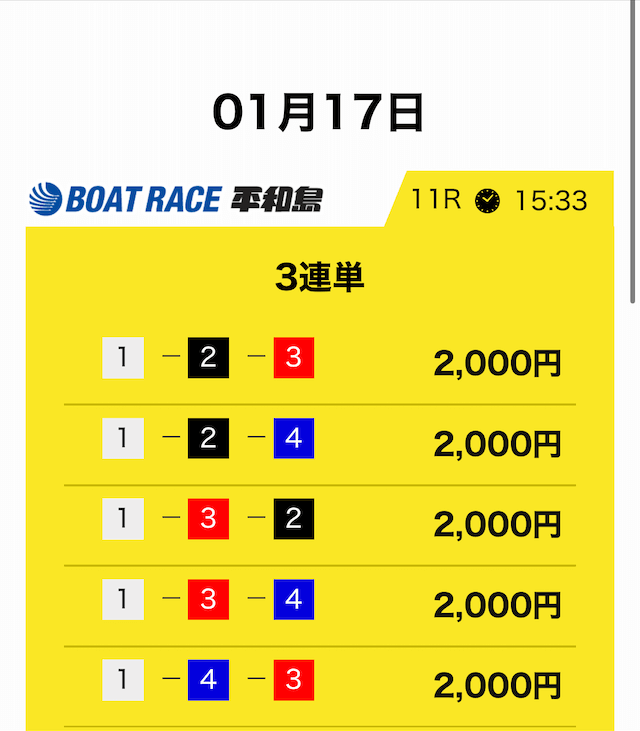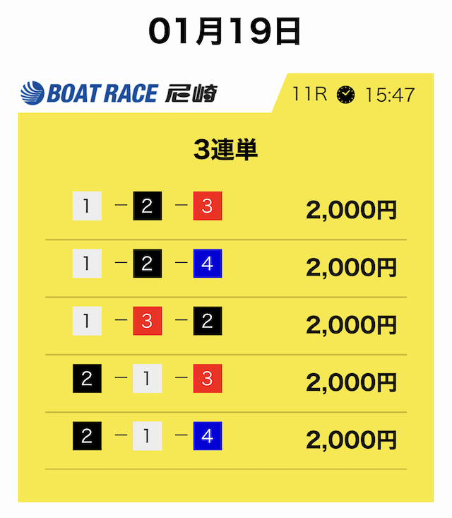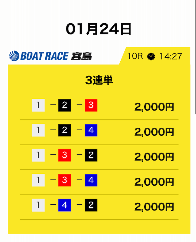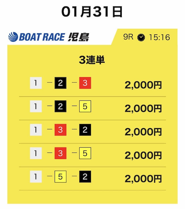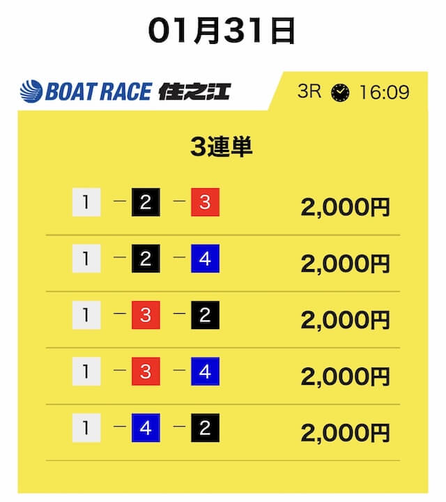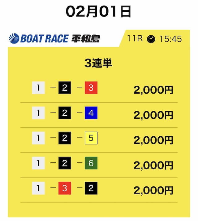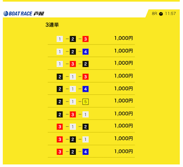 実際に公開された予想から推測するに競艇サバイバーは枠を重視したようで、1号艇を軸に選択。