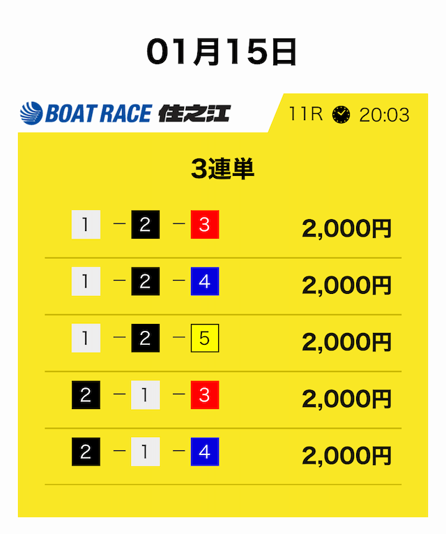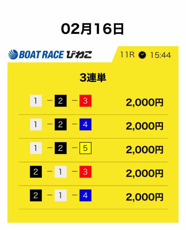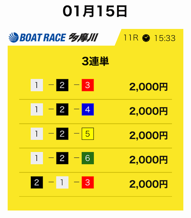 | 2025/11/15 プレミアム 情報料金+舟券代 60,000円+10,000円 |