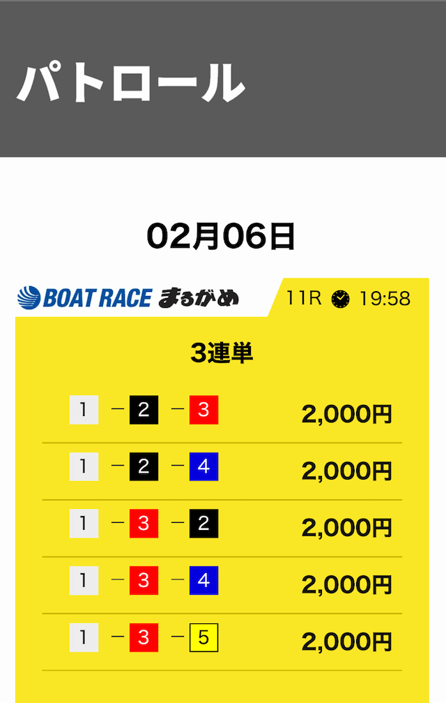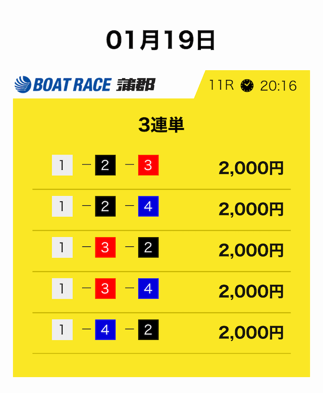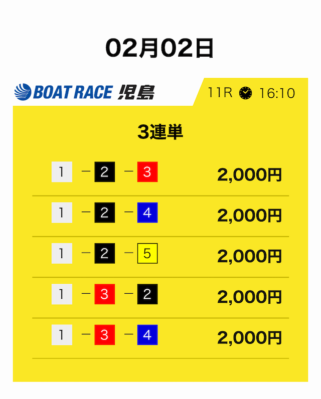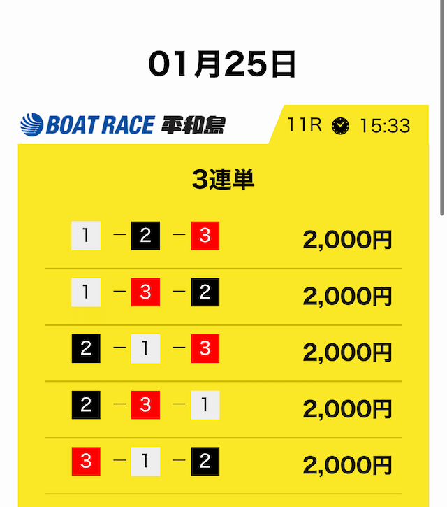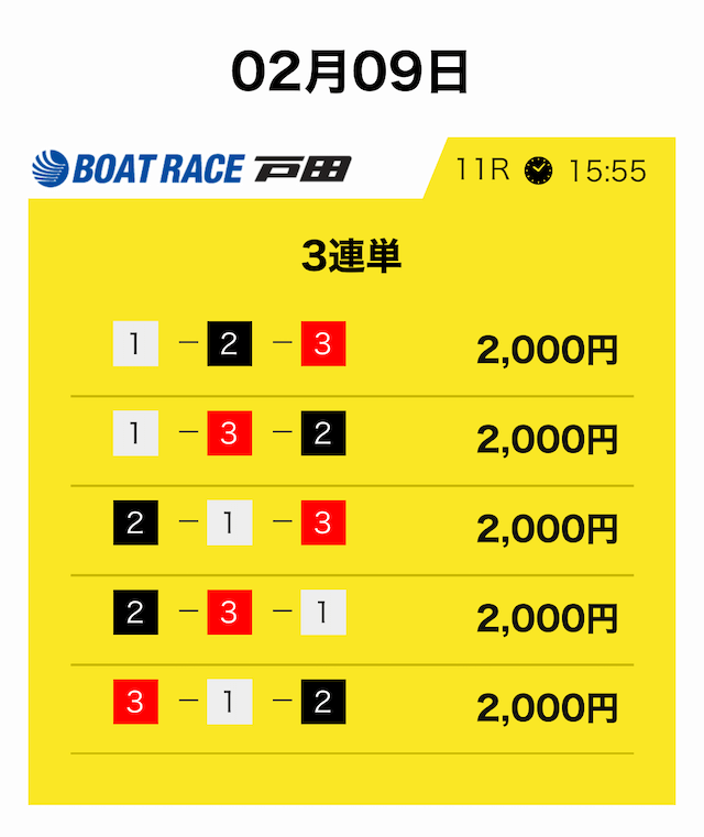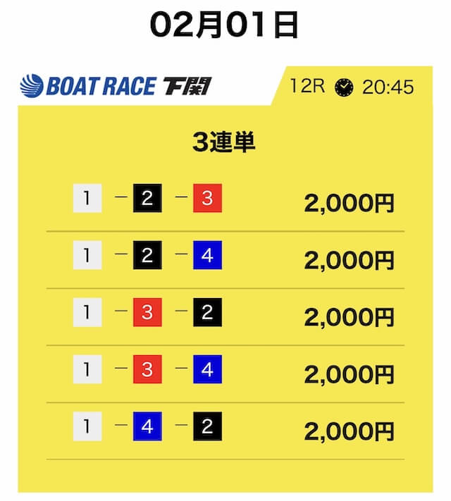 | ①③⑥ | 11.3倍 | 2,000円 |