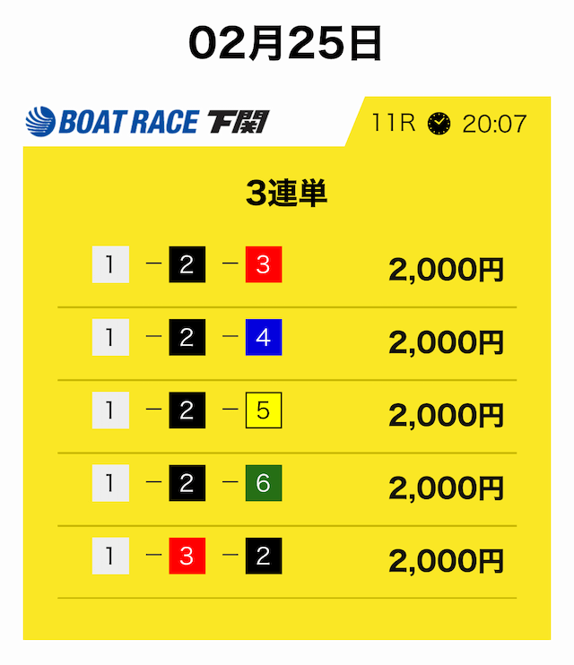 | 2025/11/20 万舟単発 情報料金+舟券代 50,000円+10,000円 |