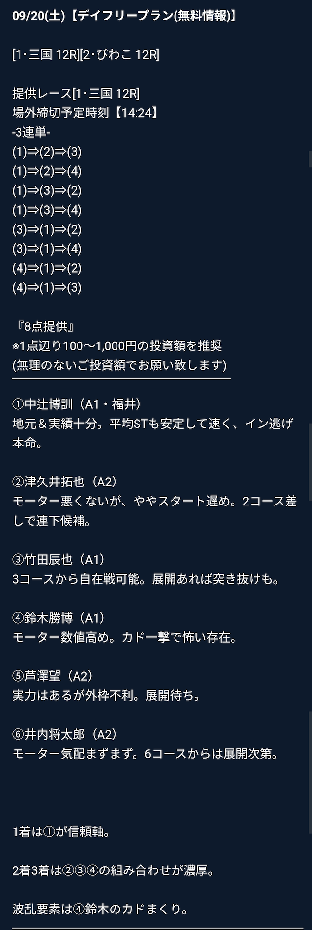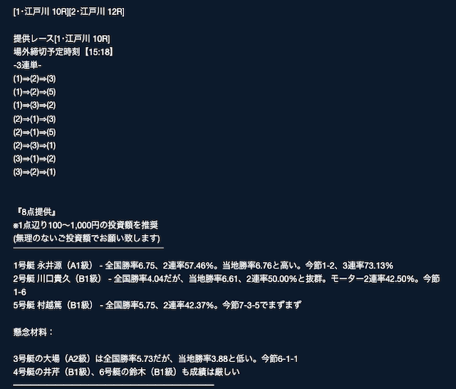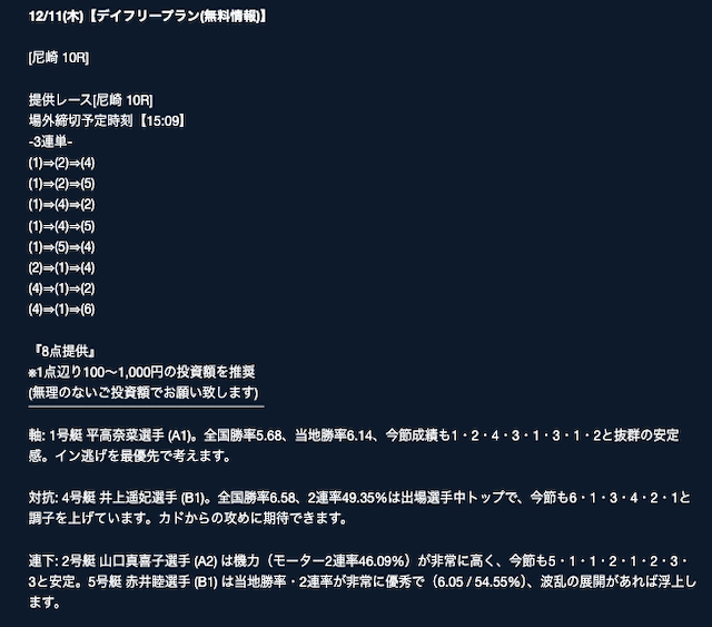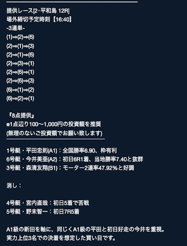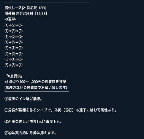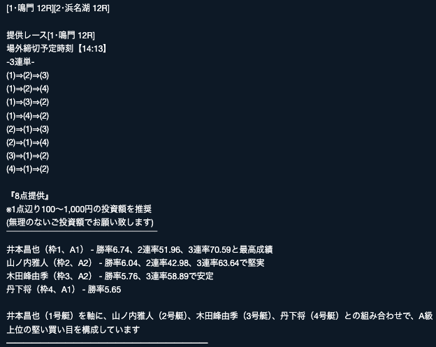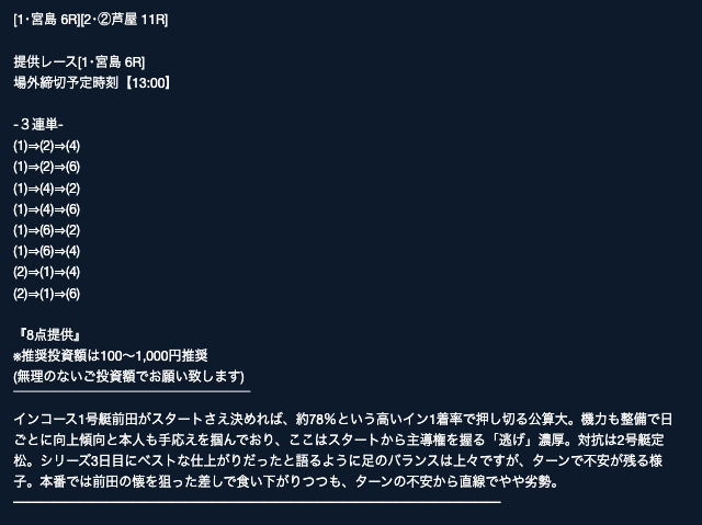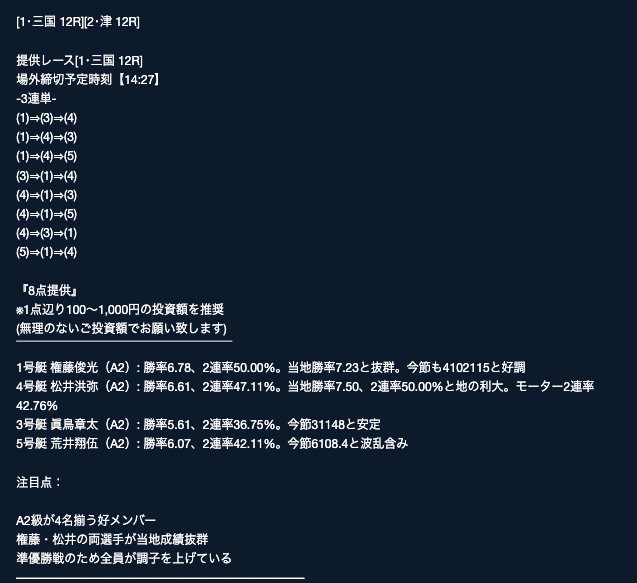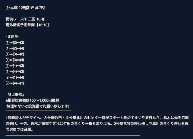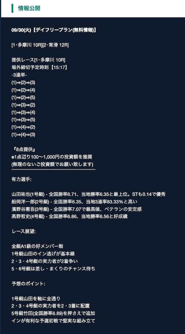 ※競艇戦線では公開された予想は出来る限り、チェックしています。