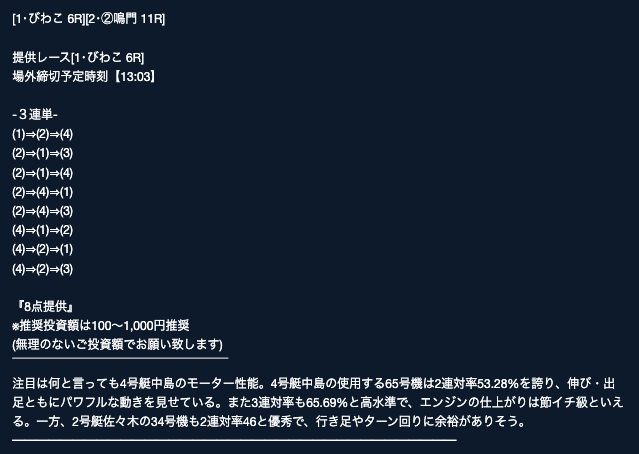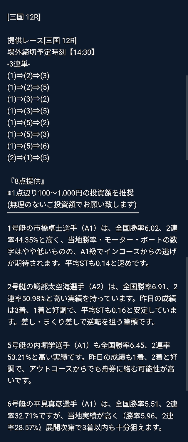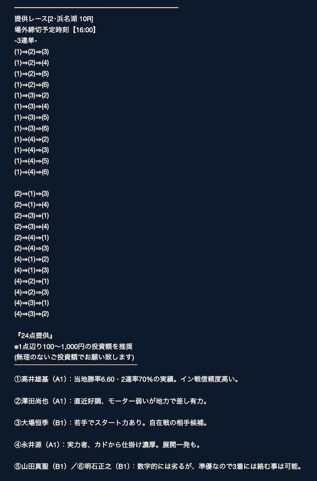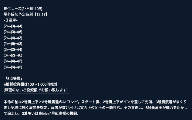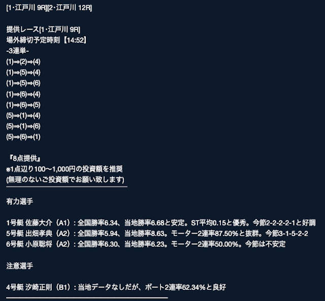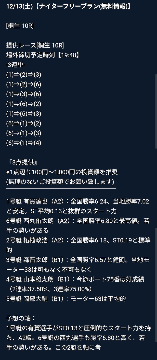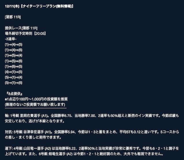 ※競艇戦線では公開された予想は出来る限り、チェックしています。