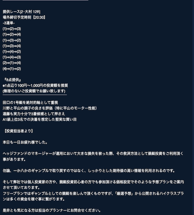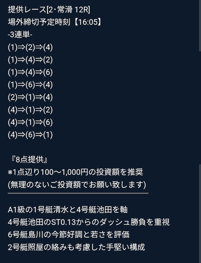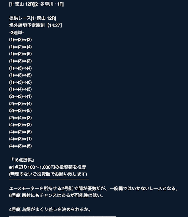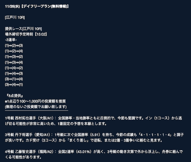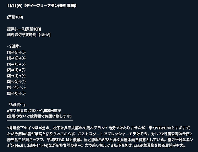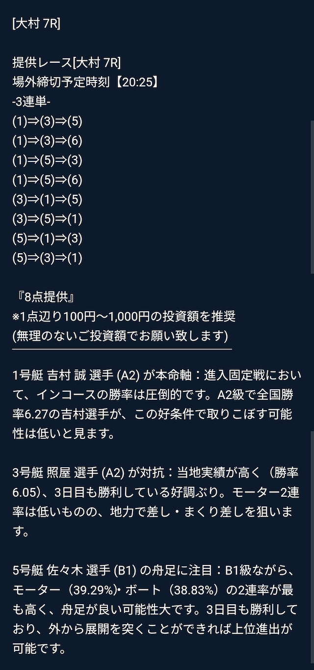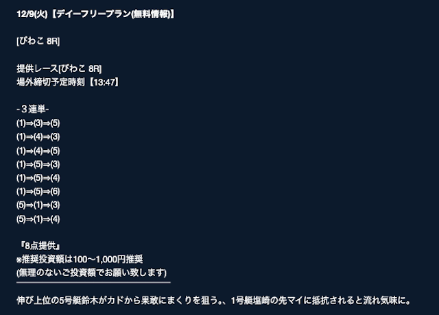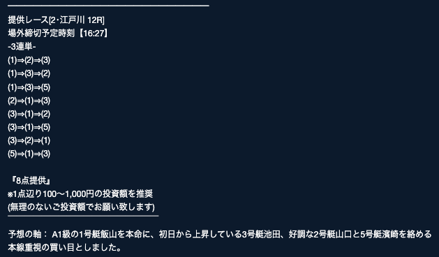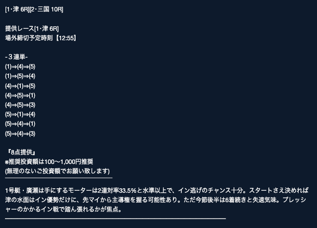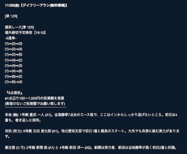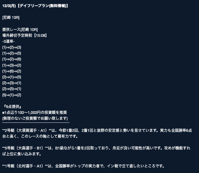 ※競艇戦線では公開された予想は出来る限り、チェックしています。