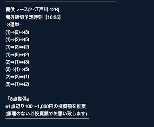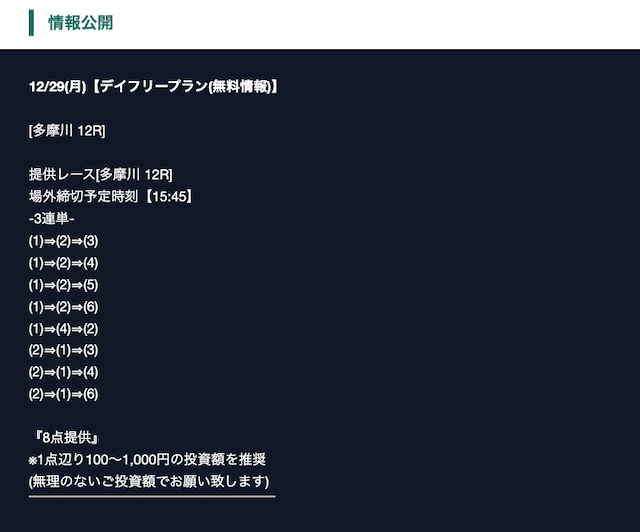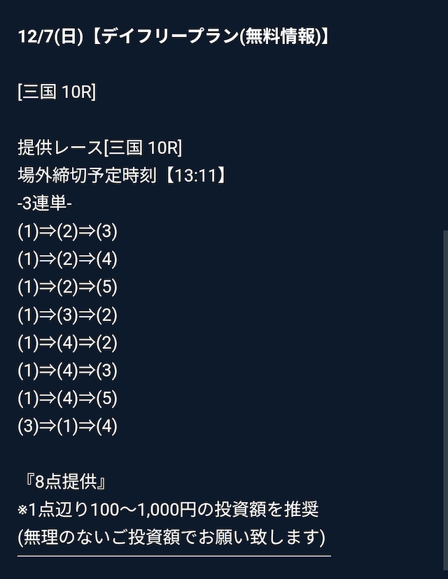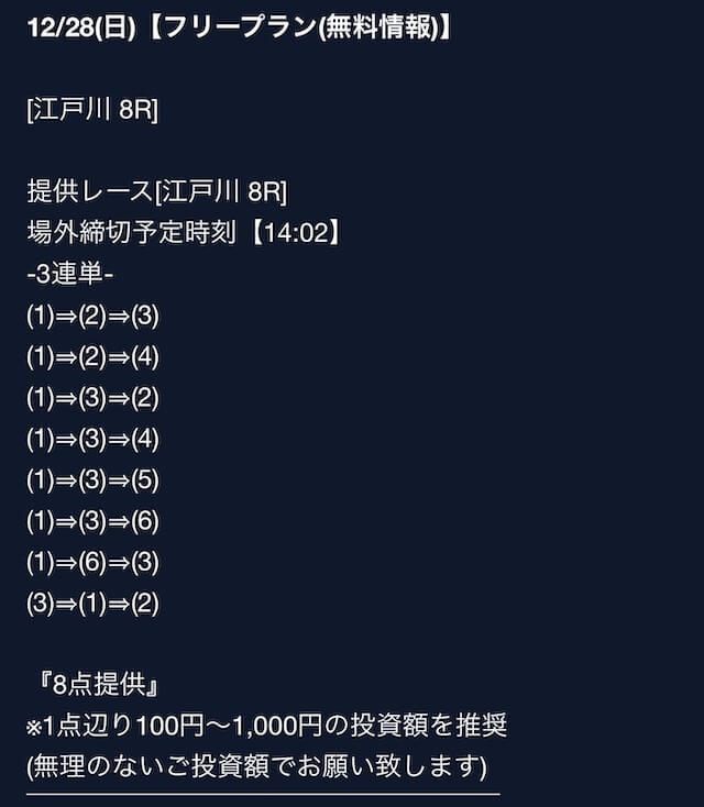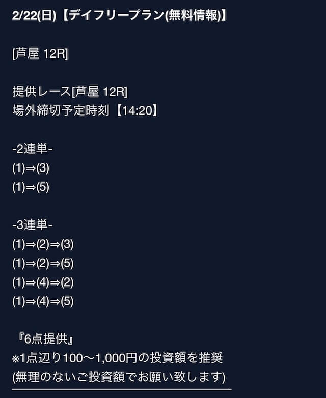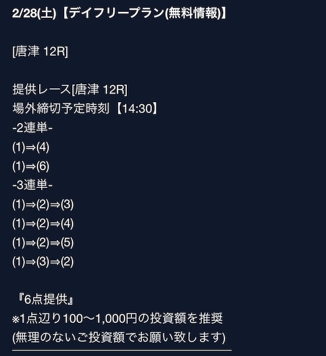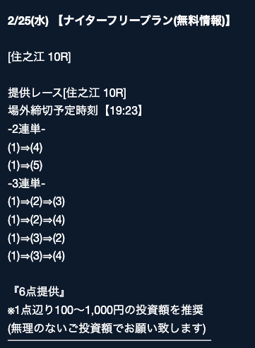 - プランの割引率が大きくて、試しに参加しやすかった。的中すれば元はすぐに取れるレベル。投稿日:2025/07/04