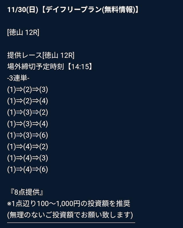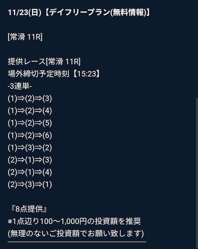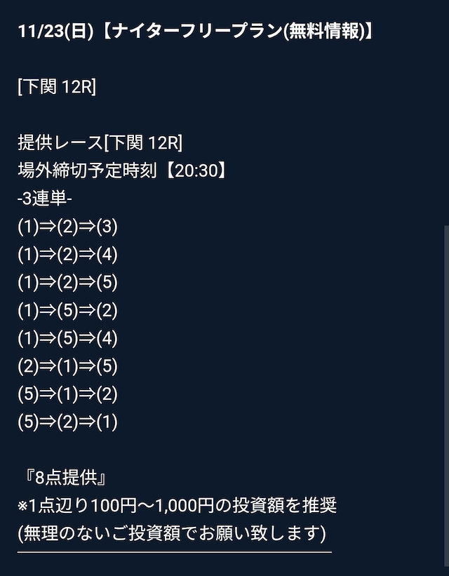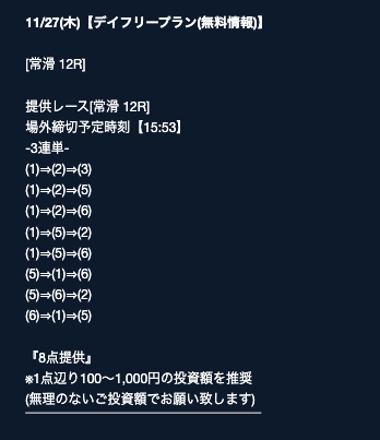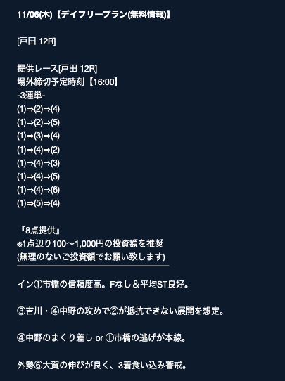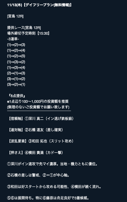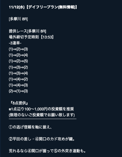 - 2025/12/02的中 無料予想で76,400円獲得2025/11/29的中 無料予想で35,100円獲得2025/11/27的中 無料予想で15,600円獲得2025/11/25的中 無料予想で30,400円獲得2025/11/19的中 無料予想で18,700円獲得2025/11/16的中 無料予想で9,700円獲得2025/11/09的中 無料予想で8,000円獲得2025/11/06的中 無料予想で18,000円獲得2025/11/01的中 無料予想で18,300円獲得2025/11/01的中 無料予想で18,500円獲得