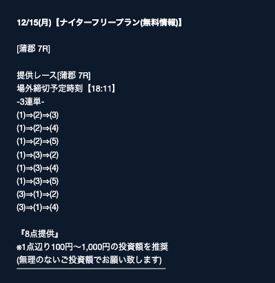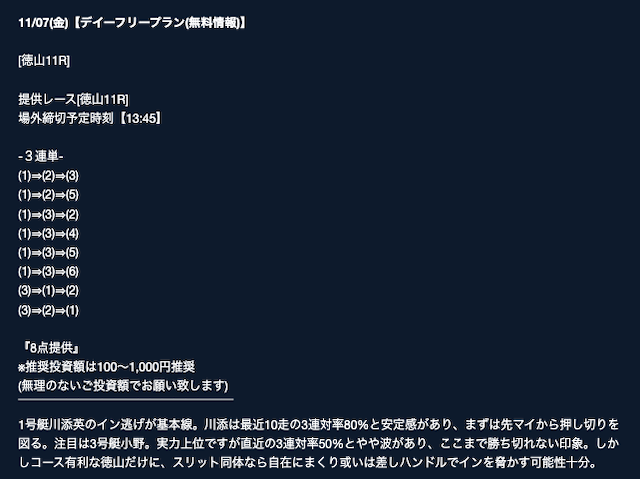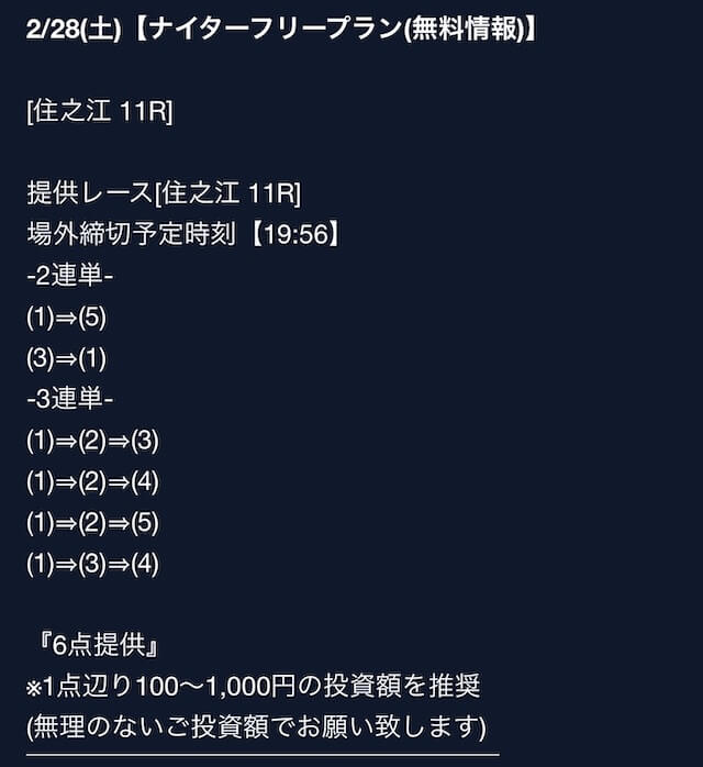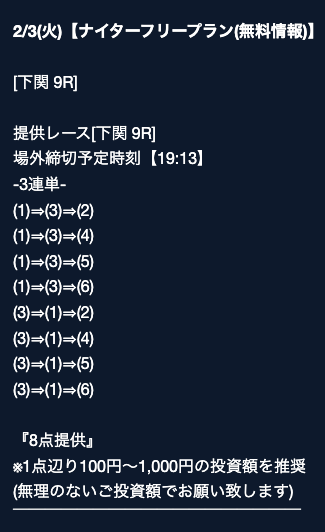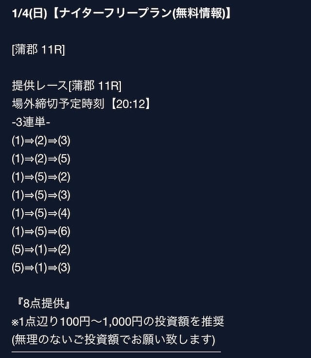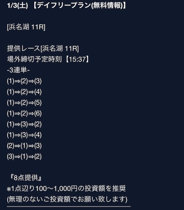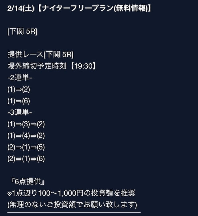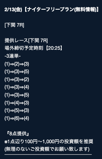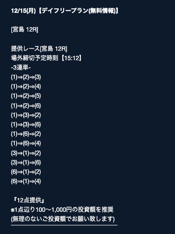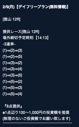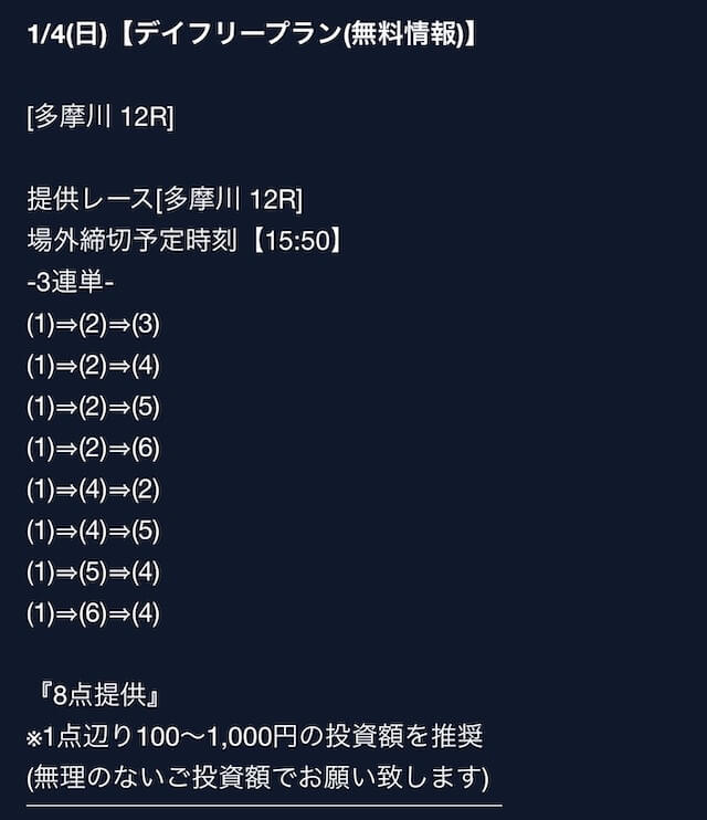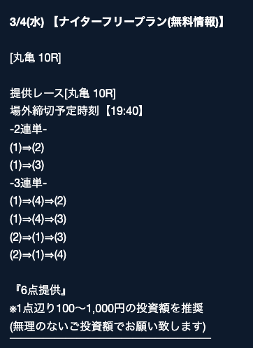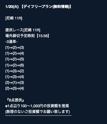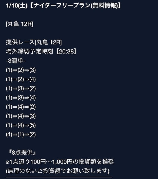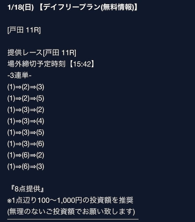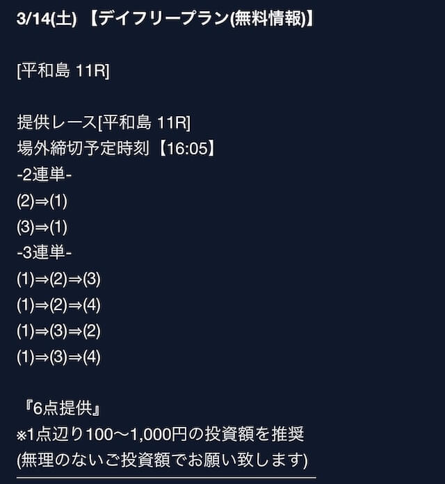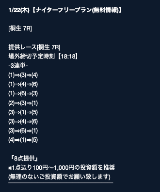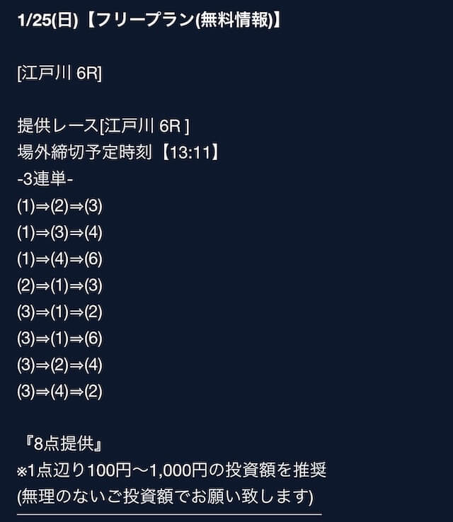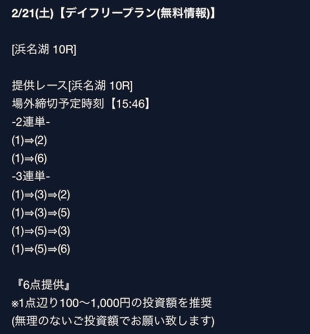匿名最初は裏があるんじゃないかと疑ってましたけど、今は安心して使ってます。 特に週末は3戦2勝くらいのペースで来てるので、下手な有料より使えます。投稿日:2025/08/02