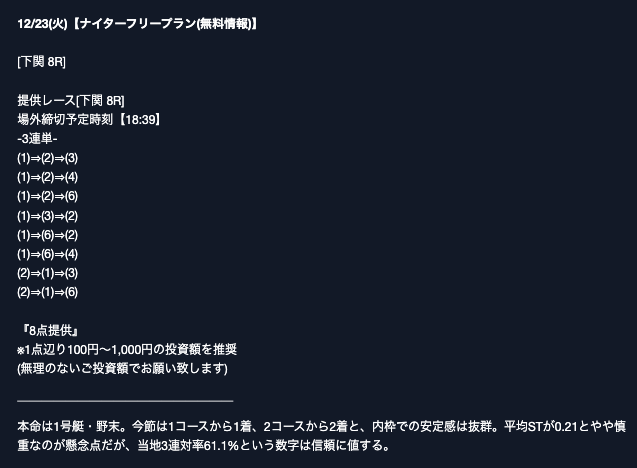 - 以前使ってた他サイトは、とにかく営業LINEやDMがうるさかったんですよね…。 でもボートテクニカルは、的中情報だけをサクッと送ってくれる感じで、ストレスなし。 自分のペースで楽しめるのが地味に嬉しいポイント。 これって意外と重要なんですよね。投稿日:2025/06/10