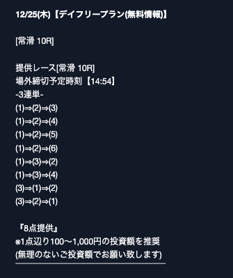 - 締切ギリギリで買い目が届いて焦った。外れたときのストレス倍増。投稿日:2025/08/14