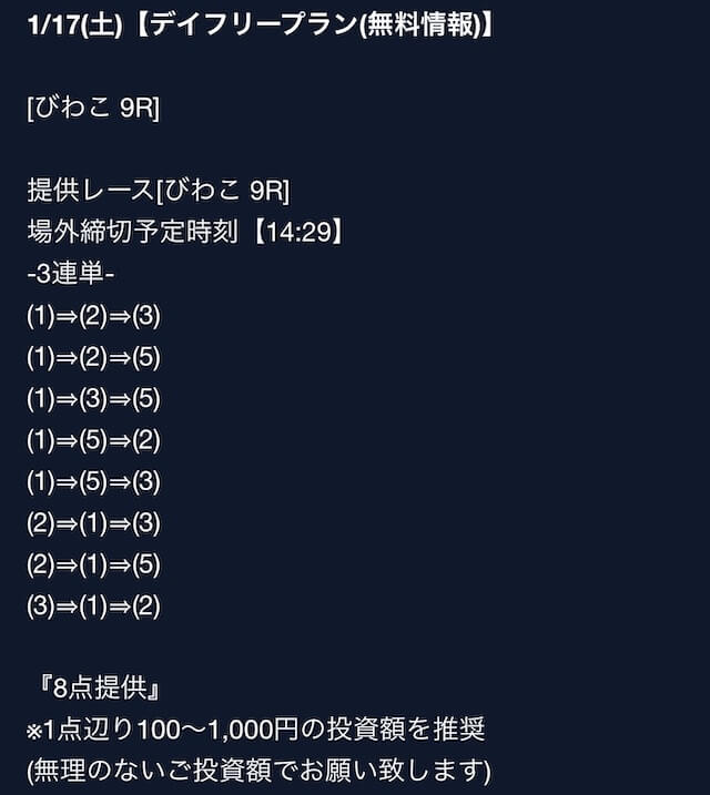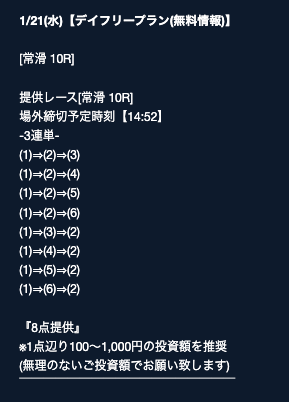 - 2026/01/19的中 無料予想で49,400円獲得2026/01/17的中 無料予想で9,100円獲得2026/01/16的中 無料予想で16,700円獲得2026/01/16的中 無料予想で11,800円獲得2026/01/09的中 無料予想で10,100円獲得2025/12/31的中 無料予想で8,900円獲得2025/12/30的中 無料予想で24,800円獲得2025/12/28的中 無料予想で9,800円獲得2025/12/27的中 無料予想で29,500円獲得2025/12/26的中 無料予想で14,400円獲得