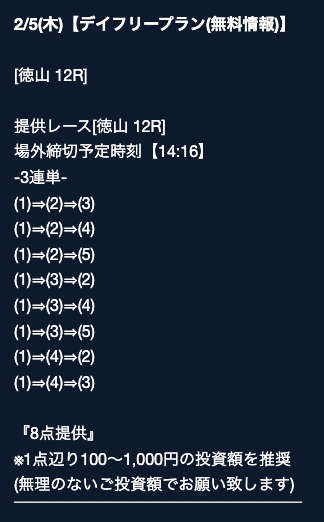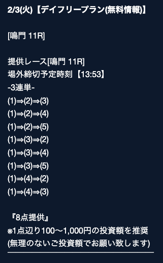 - 券種:3連単(4〜8点)