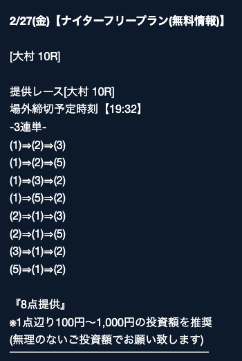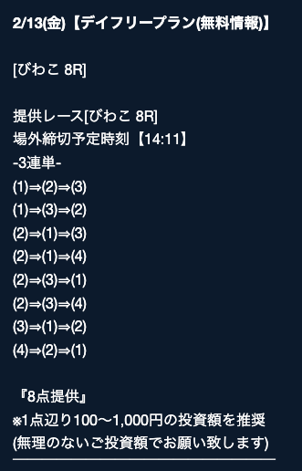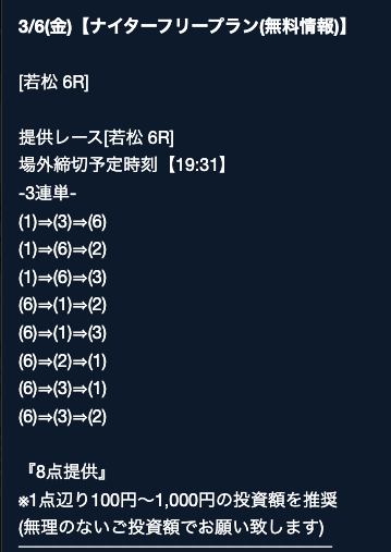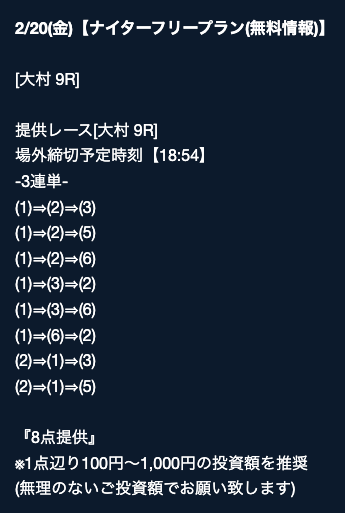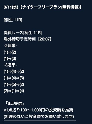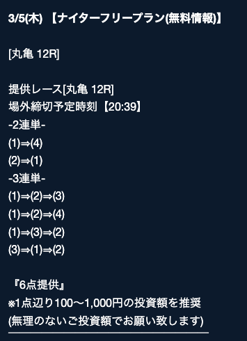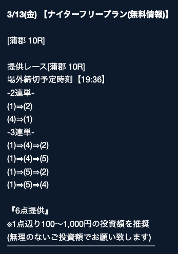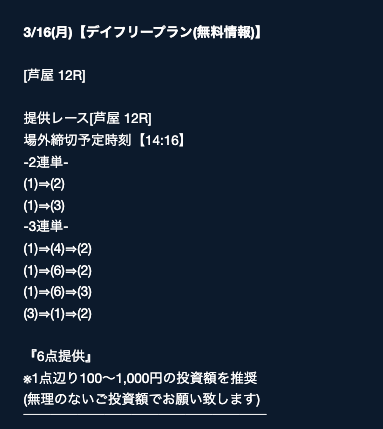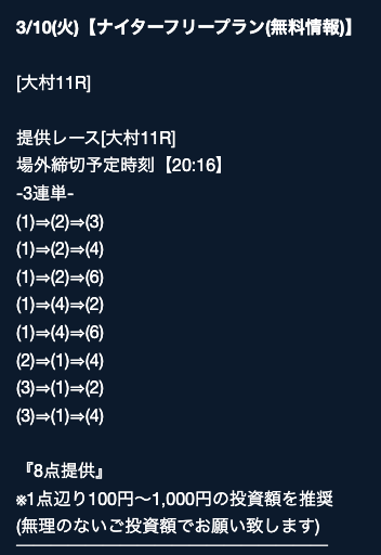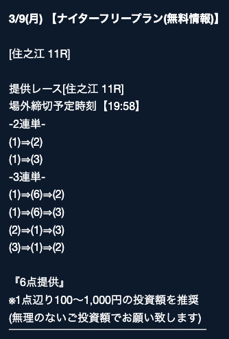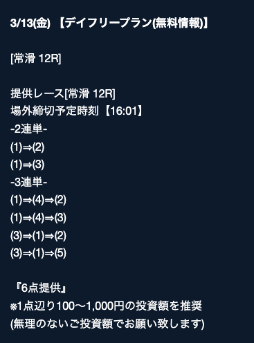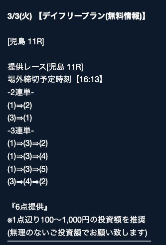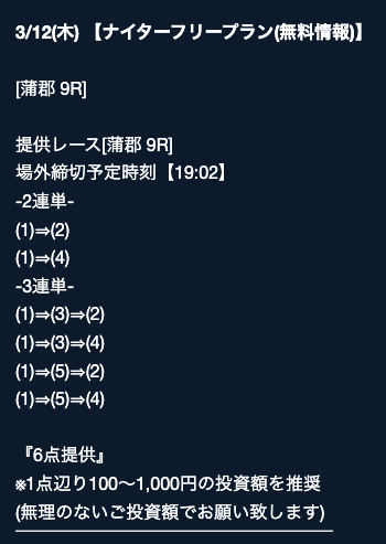 - 2026/03/16的中 無料予想で40,200円獲得2026/03/14的中 無料予想で42,000円獲得2026/03/13的中 無料予想で7,400円獲得2026/03/12的中 無料予想で19,500円獲得2026/03/09的中 無料予想で5,000円獲得2026/03/09的中 無料予想で17,200円獲得2026/03/08的中 無料予想で12,000円獲得2026/03/04的中 無料予想で2,800円獲得2026/03/03的中 無料予想で18,800円獲得2026/03/03的中 無料予想で3,500円獲得
