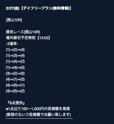 - 締切時間が迫っていることが多い(無料予想)