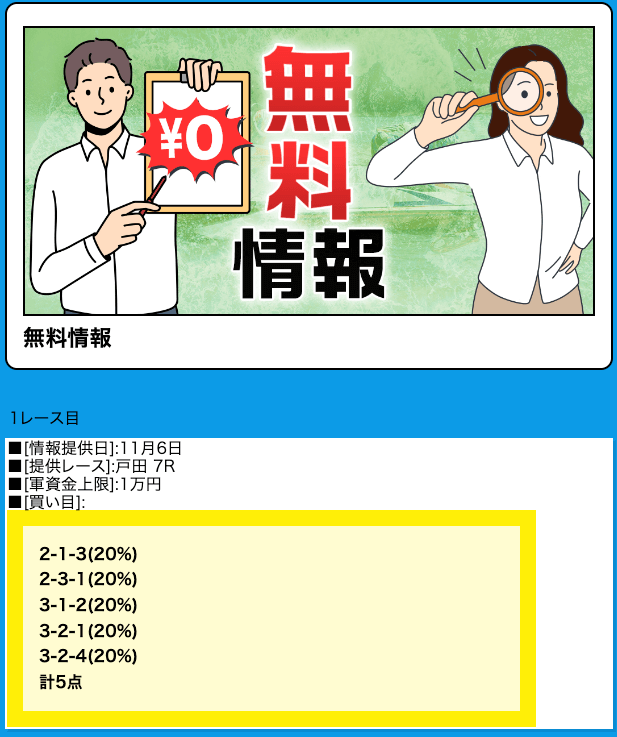 - 2025/11/11的中 無料予想で13,400円獲得2025/10/31的中 無料予想で23,000円獲得2025/10/30的中 無料予想で18,200円獲得2025/10/14的中 無料予想で24,000円獲得2025/10/07的中 無料予想で17,800円獲得2025/09/26的中 無料予想で20,200円獲得2025/09/19的中 無料予想で17,600円獲得2025/09/16的中 無料予想で17,000円獲得2025/09/11的中 無料予想で69,000円獲得2025/09/10的中 無料予想で15,300円獲得
