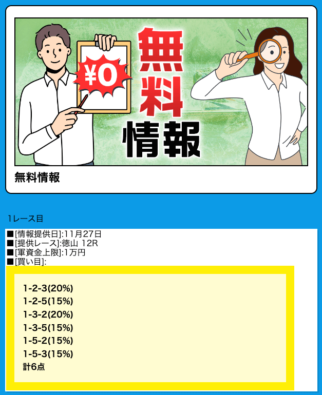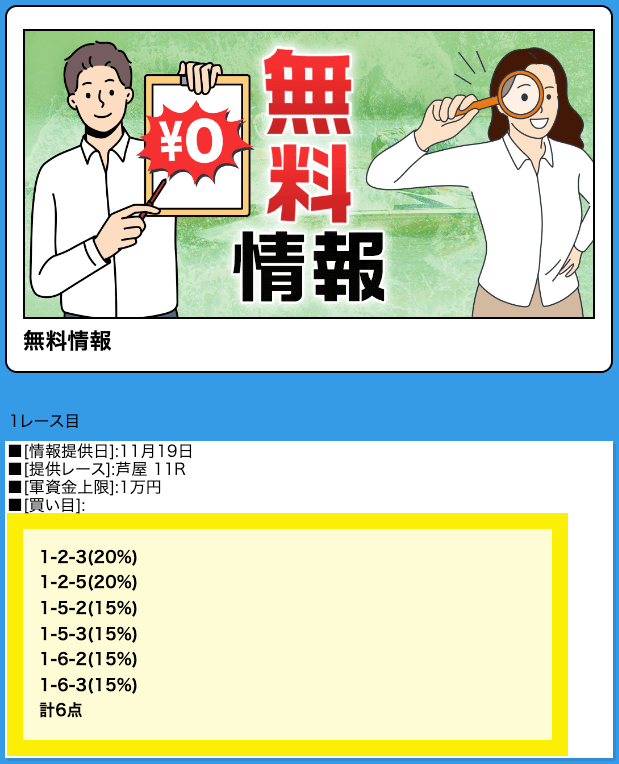 - 2025/11/18的中 無料予想で103,200円獲得2025/11/17的中 無料予想で25,400円獲得2025/11/16的中 無料予想で43,000円獲得2025/11/13的中 無料予想で39,400円獲得2025/11/11的中 無料予想で13,400円獲得2025/11/10的中 無料予想で16,000円獲得2025/11/09的中 無料予想で22,400円獲得2025/11/08的中 無料予想で26,600円獲得2025/10/31的中 無料予想で23,000円獲得2025/10/30的中 無料予想で18,200円獲得