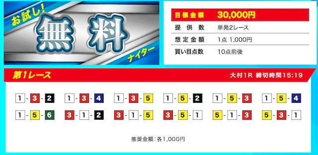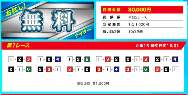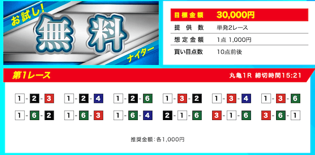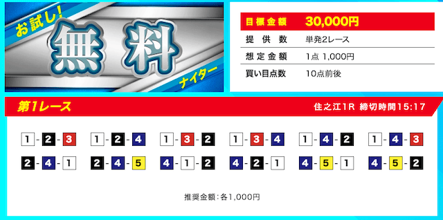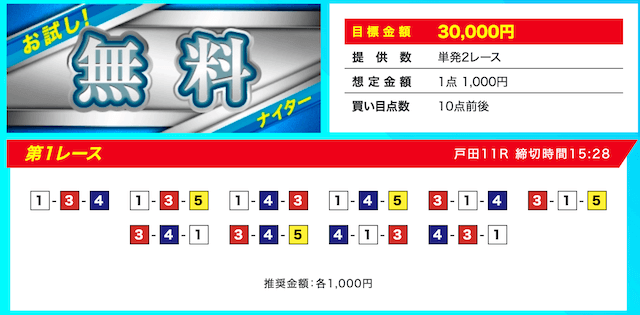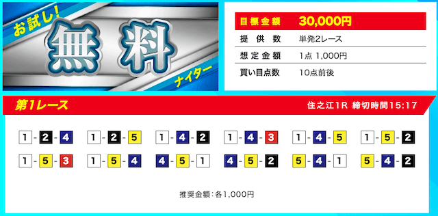 | 無料予想の口コミ | 無料予想における口コミの★評価 | 1.0点 |