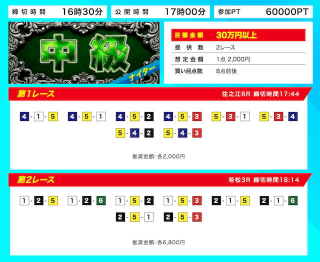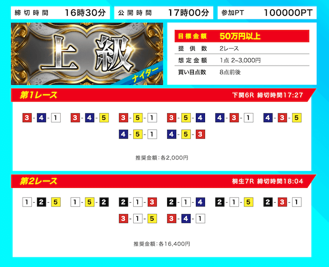 匿名上級というプランに参加して、まさかの1R目で不的中。2R目で的中して、結果的に3万円のマイナス・・・。中堅プランの方が上がるのでは?投稿日:2025/11/18