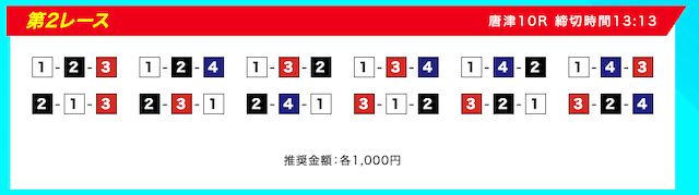 「①-②-③④」「②-①-③」といった人気どころをあえて切り、センター勢を軸に選択したのは「一波乱ある展開」を完全に読み切っていた証拠。