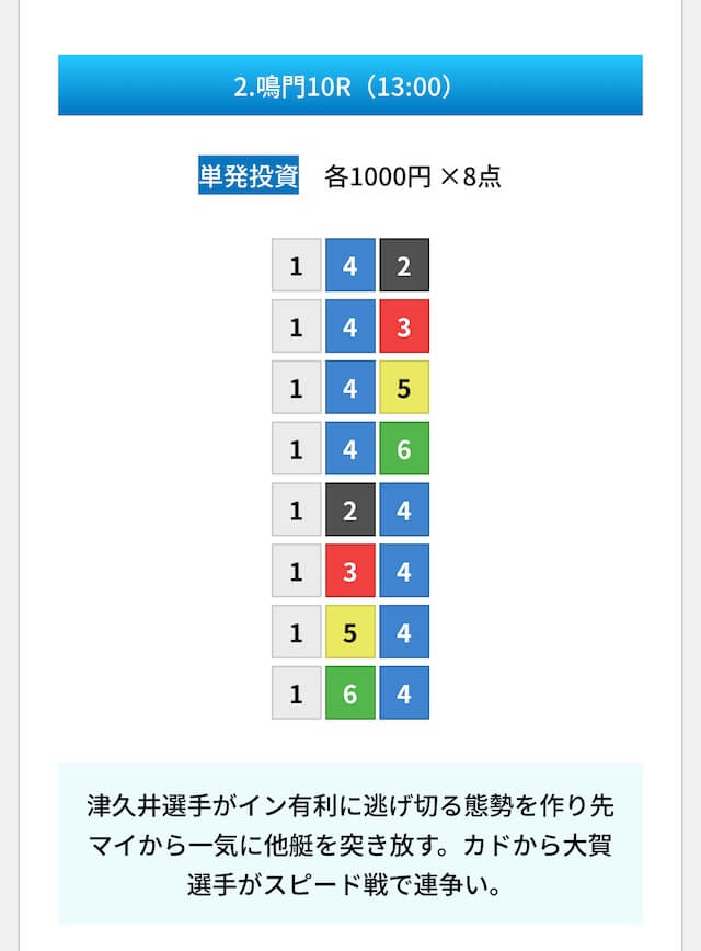 しかも、1レースの舟券代は5,000円と少額なので、不的中時のリスクが低いのが特徴。