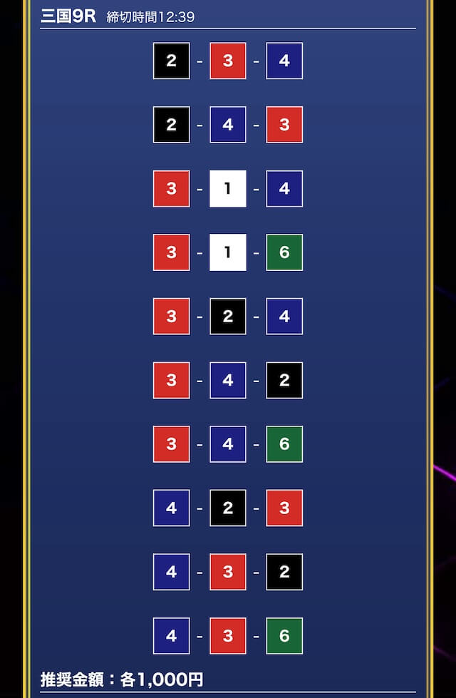 - 券種:3連単(5点)