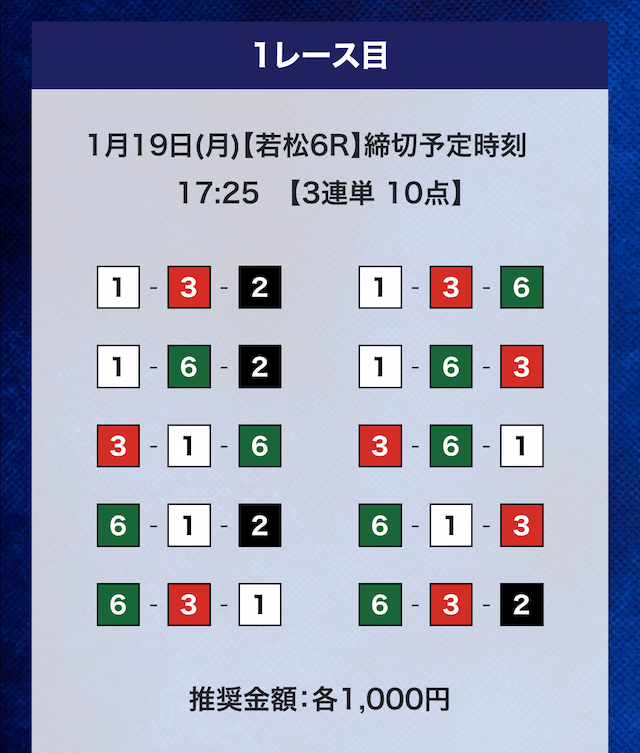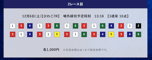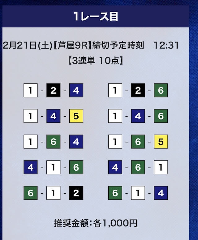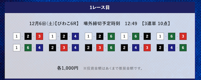 さらに、1マークの展開を多角的に予測し、展開が向く人気薄までピンポイントで押さえたことで、目標金額通りの払戻金を獲得。有料予想ならではの高い予想力が伺えます。