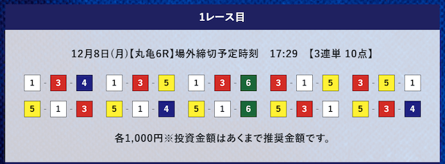 - タイミング次第で大金を得られるのが魅力だね。普通に万舟を狙えるし、1着を固定しない買い方が完全にハマっている。無料予想とは思えない予想精度だし、これからも期待したいところだな。投稿日:2025/12/13
