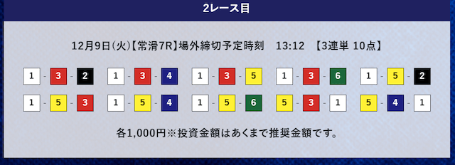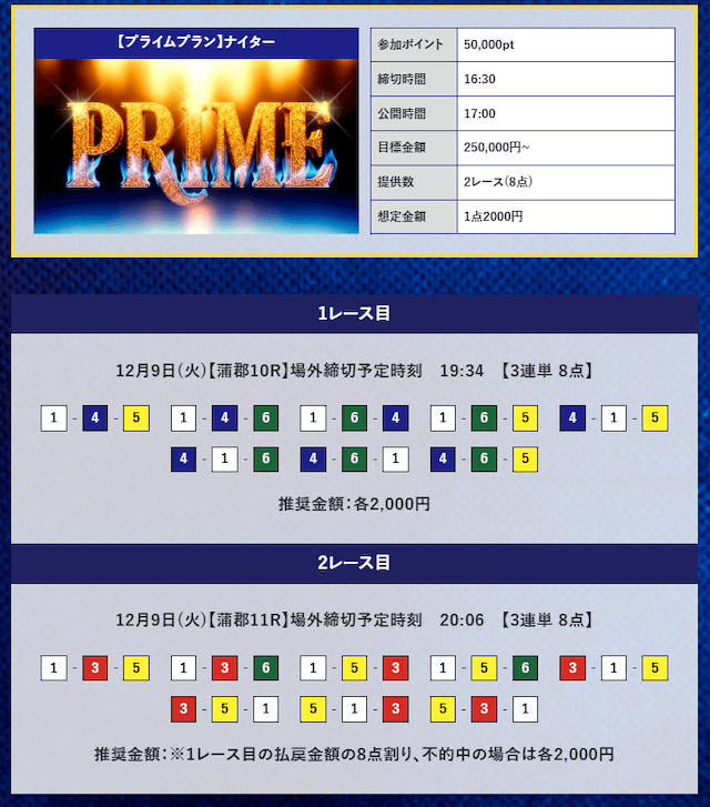 | 2025/12/9 プライム 情報料金+舟券代 50,000円+16,000円 |