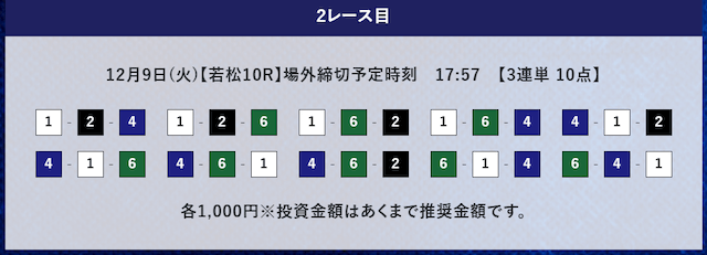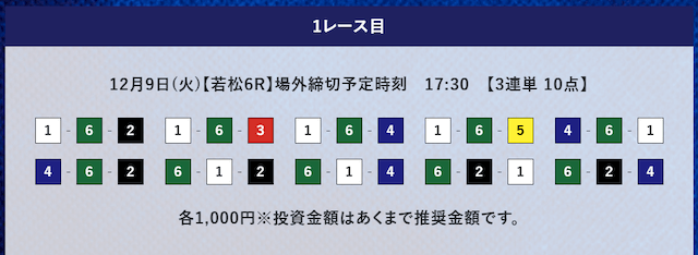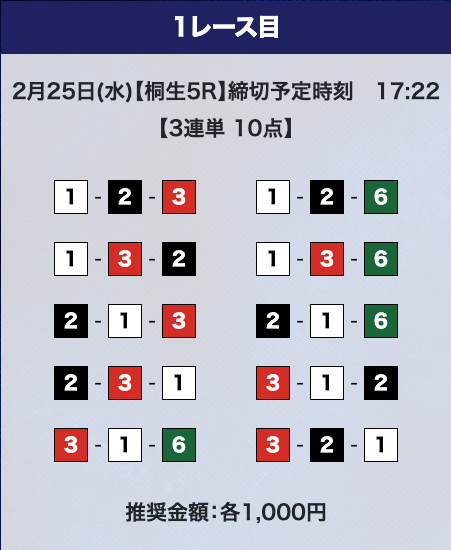 - 一通り、有料予想に参加したけど、どれも精度が高い印象だな〜。どれも的中率が高いし・目標金額通りに稼げるし、自分の軍資金に合わせて参加していくのが吉だと思う。投稿日:2025/12/08