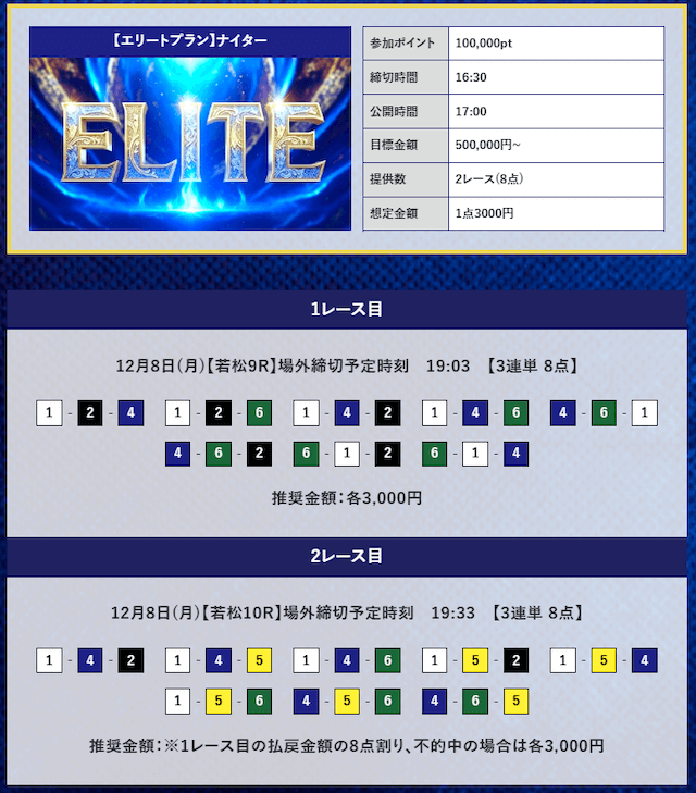 | 2025/12/8 エリート 情報料金+舟券代 100,000円+24,000円 |