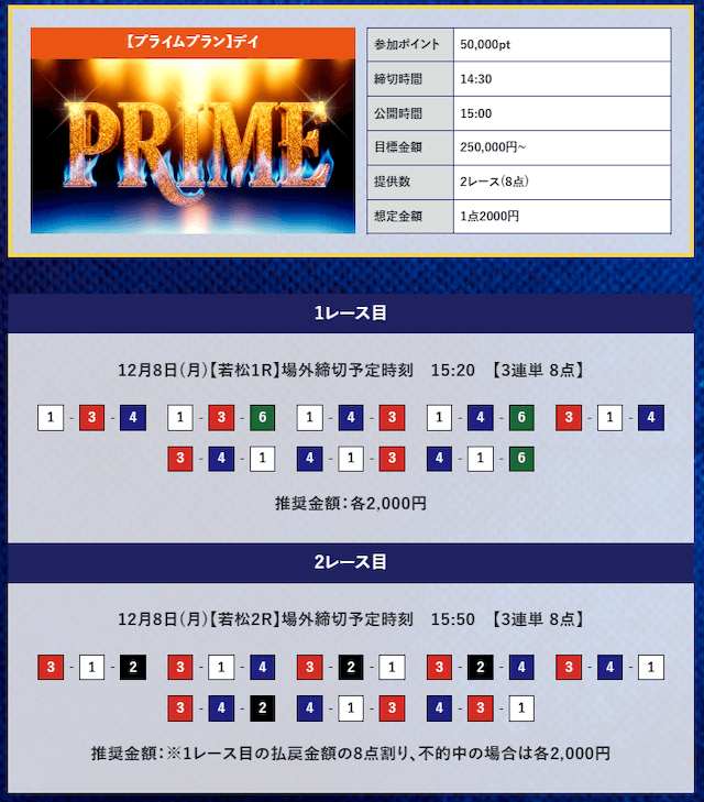 | 2025/12/8 プライム 情報料金+舟券代 50,000円+16,000円 |