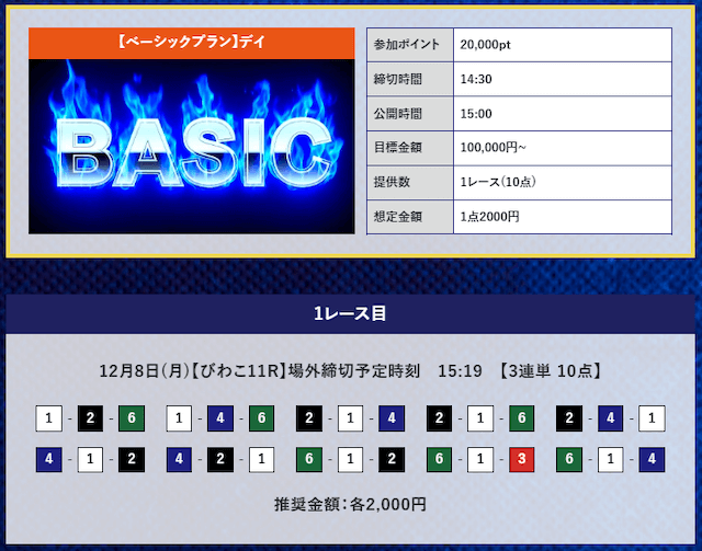 会員ページの的中実績を見ても、どのプランも的中率は7割超えって感じだな。だから。自身の軍資金と相談して、無理のない範囲で、出来るだけ上のプランに参加する⋯それだけだ。
