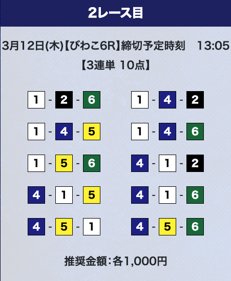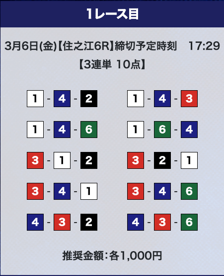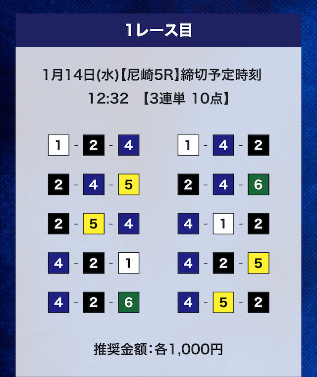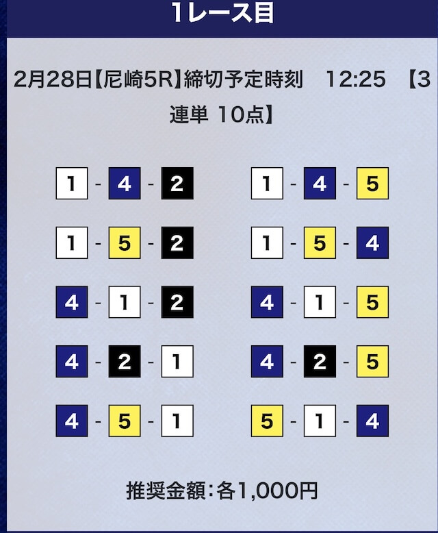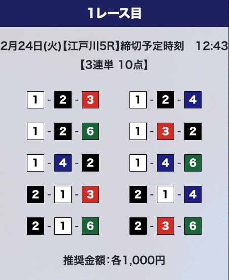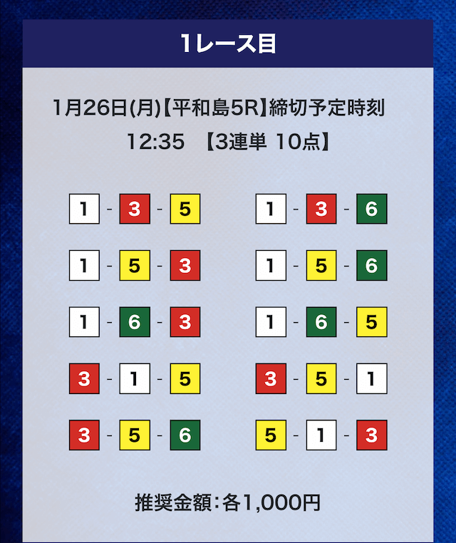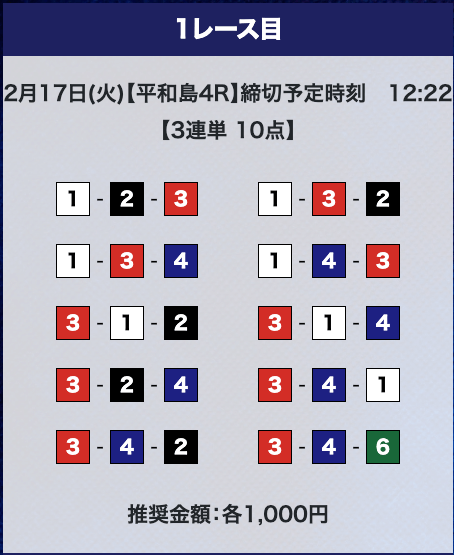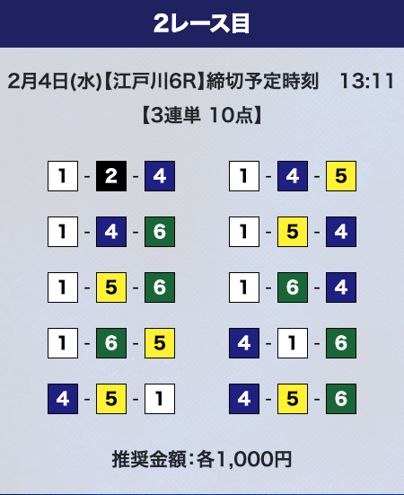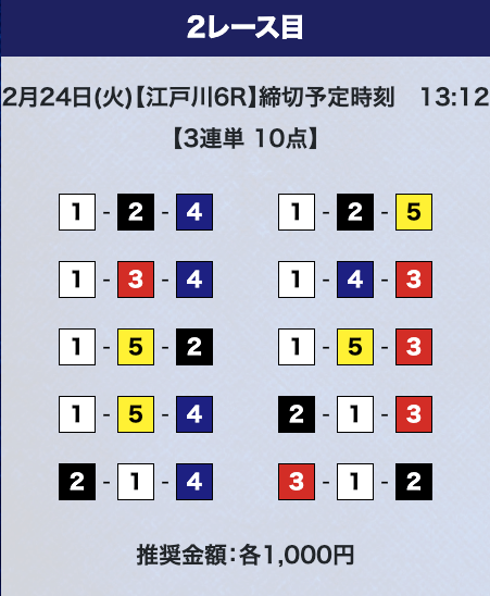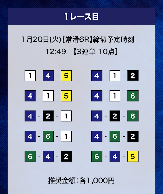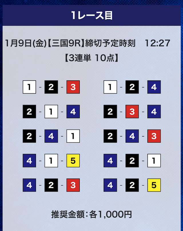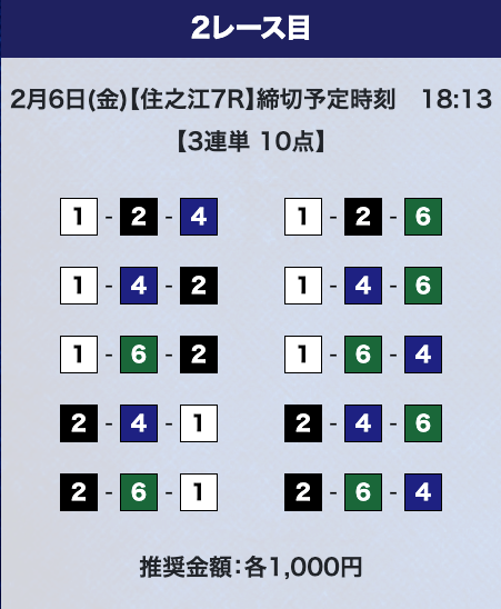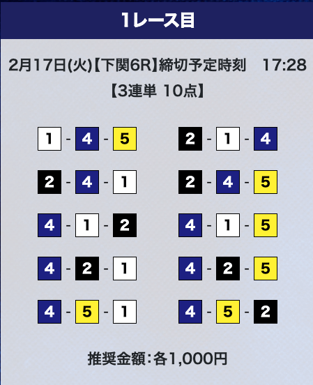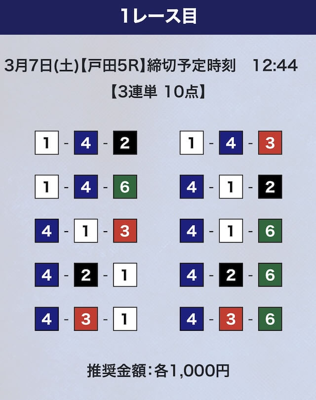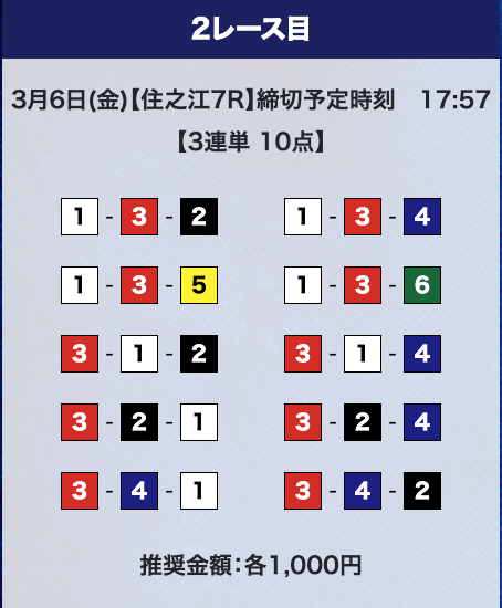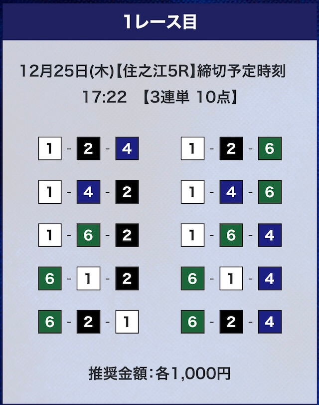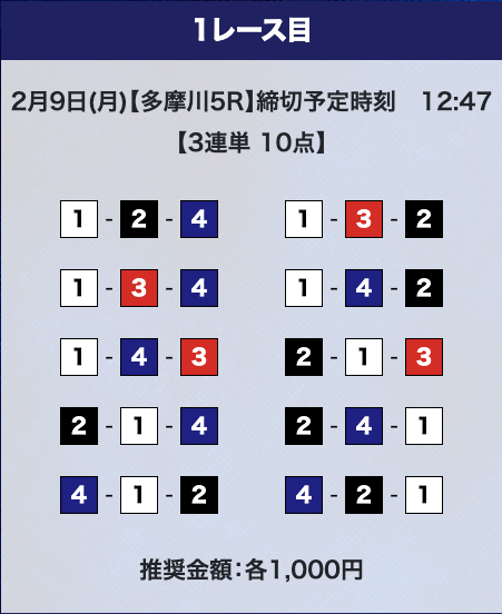 - 推奨舟券代:計10,000円(1点1,000円)