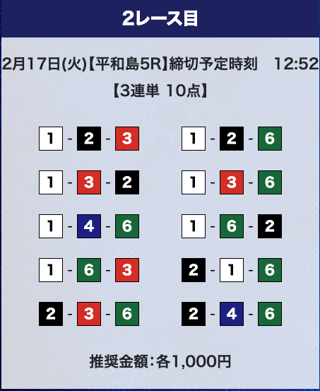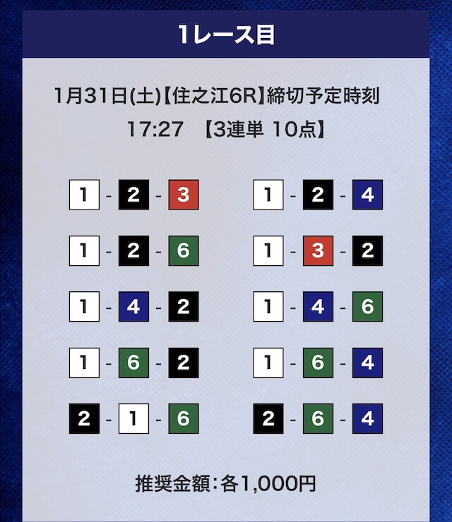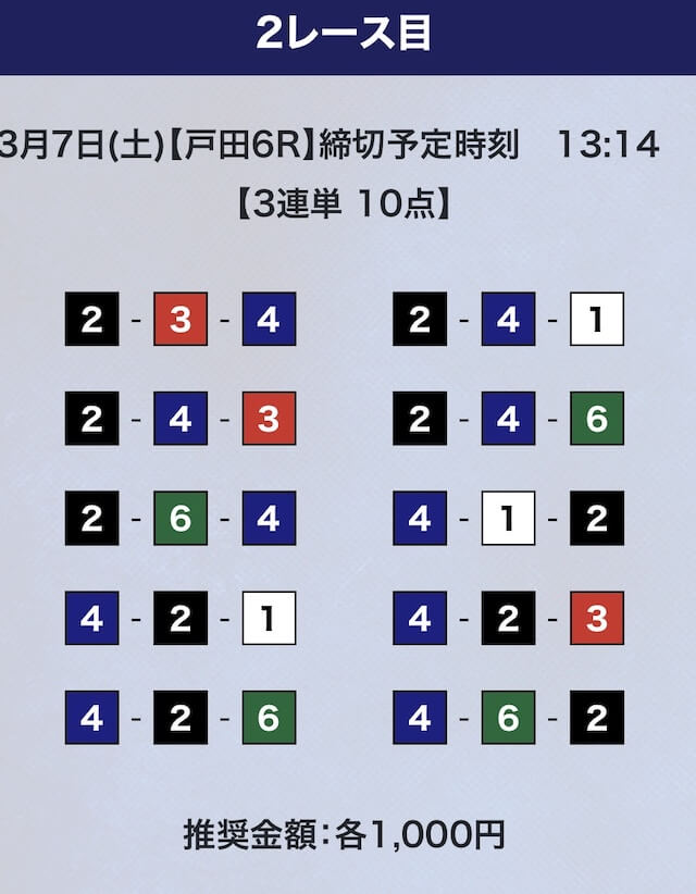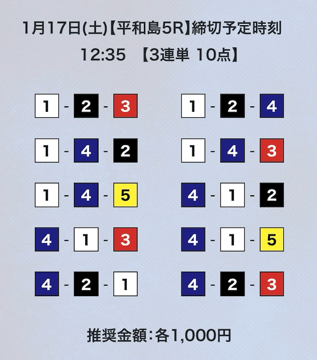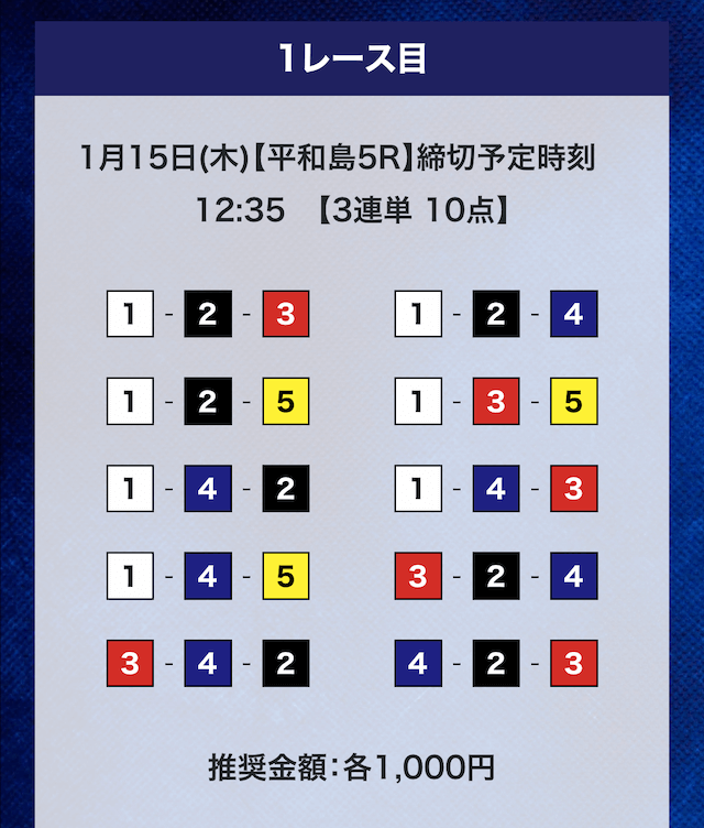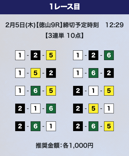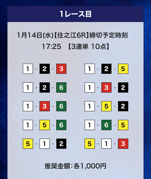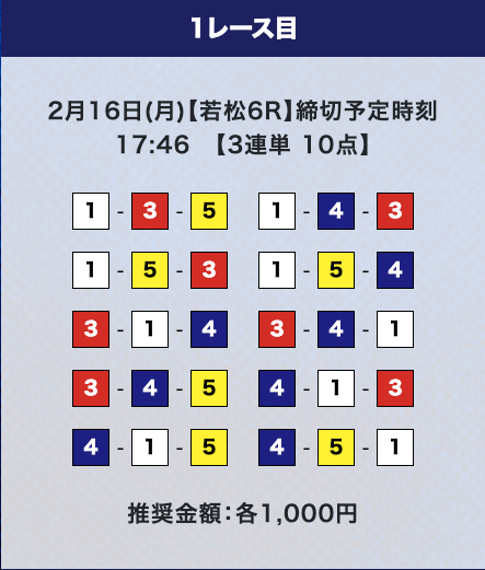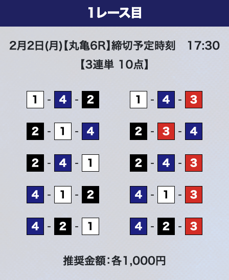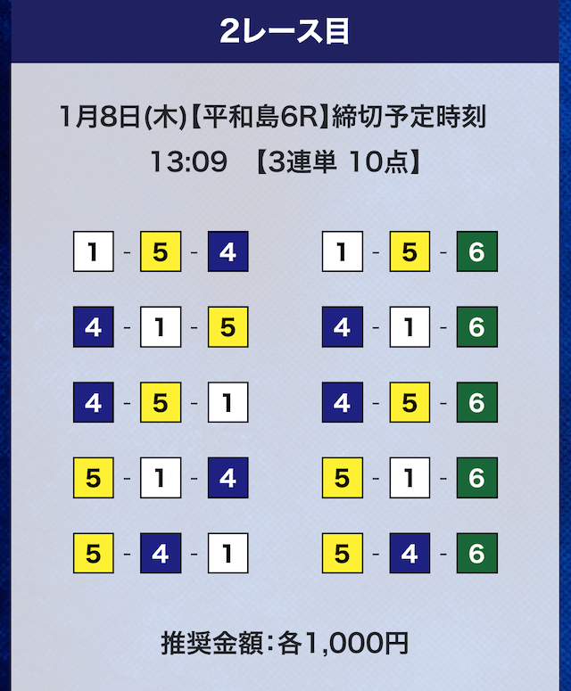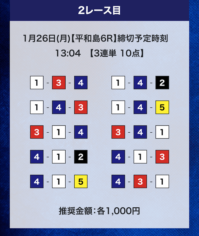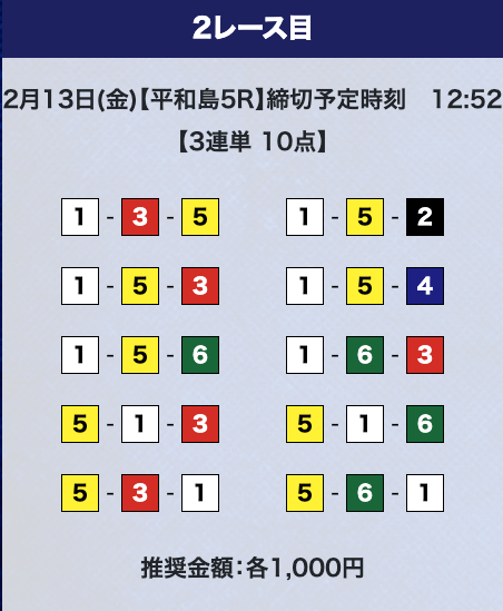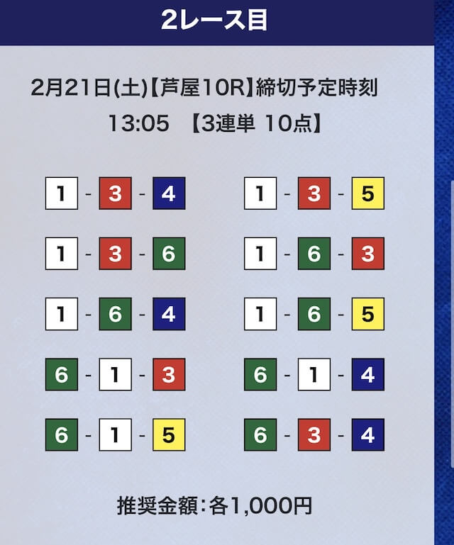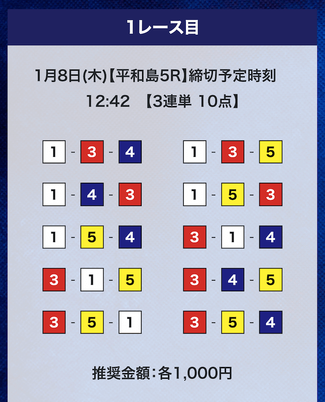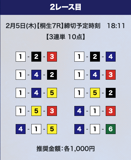 - 推奨舟券代:計10,000円(1点1,000円)