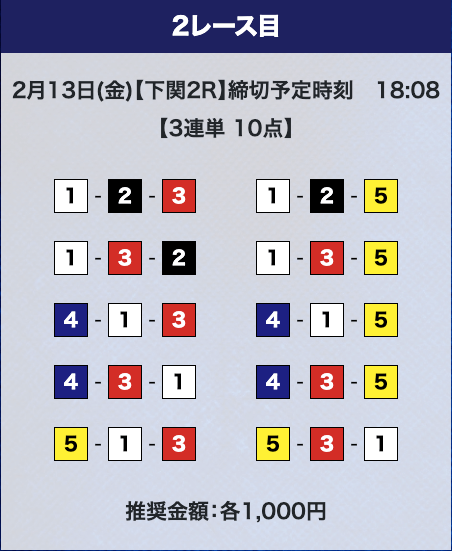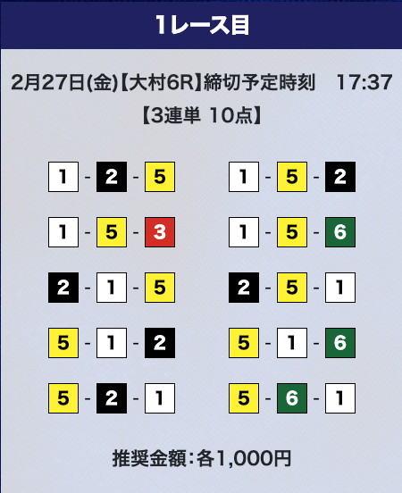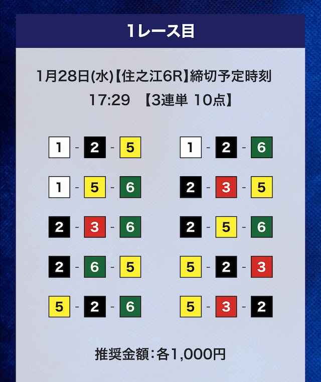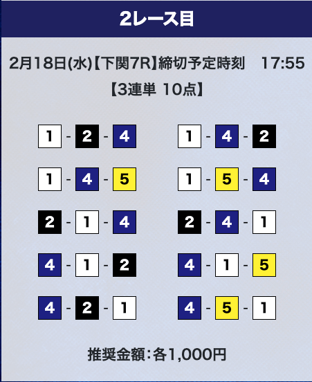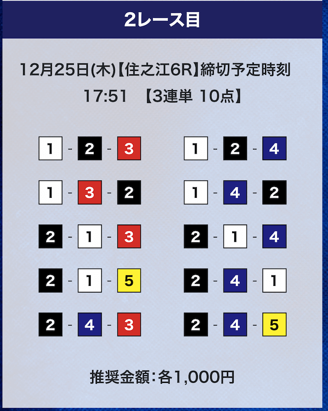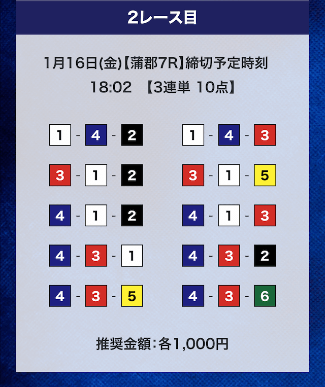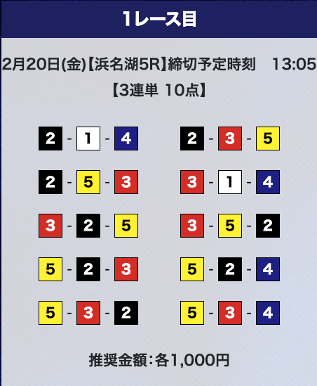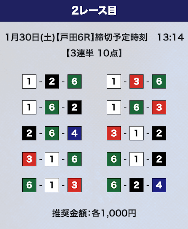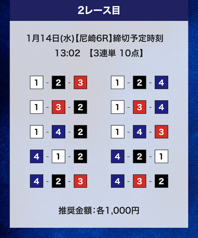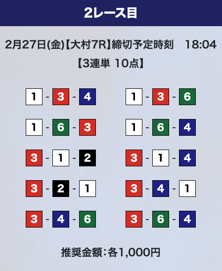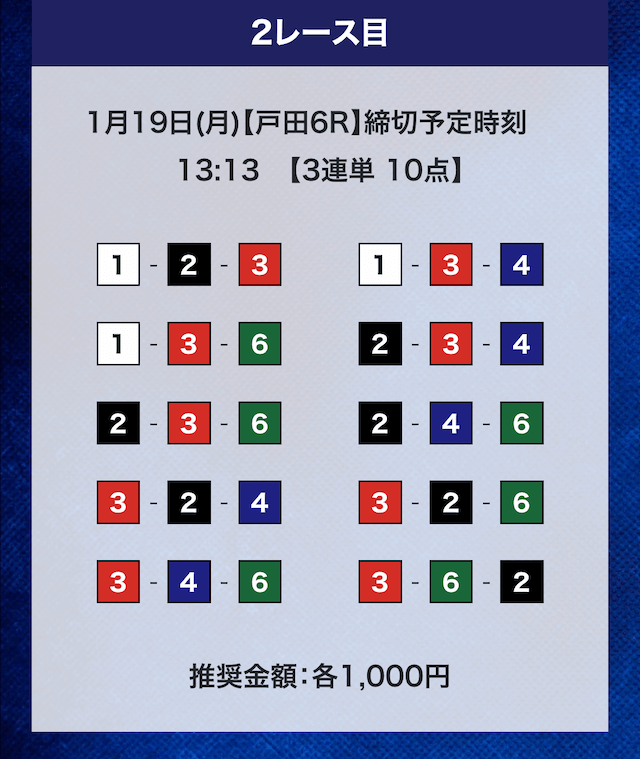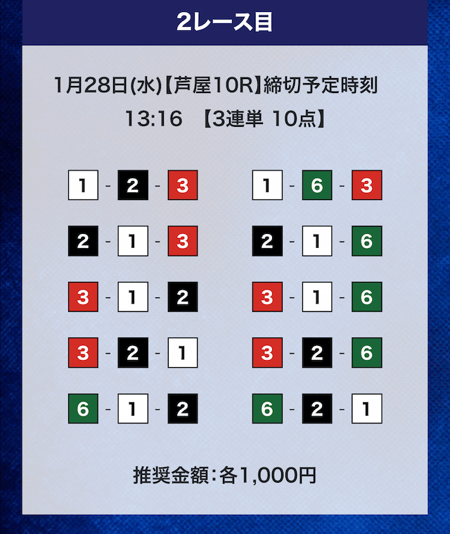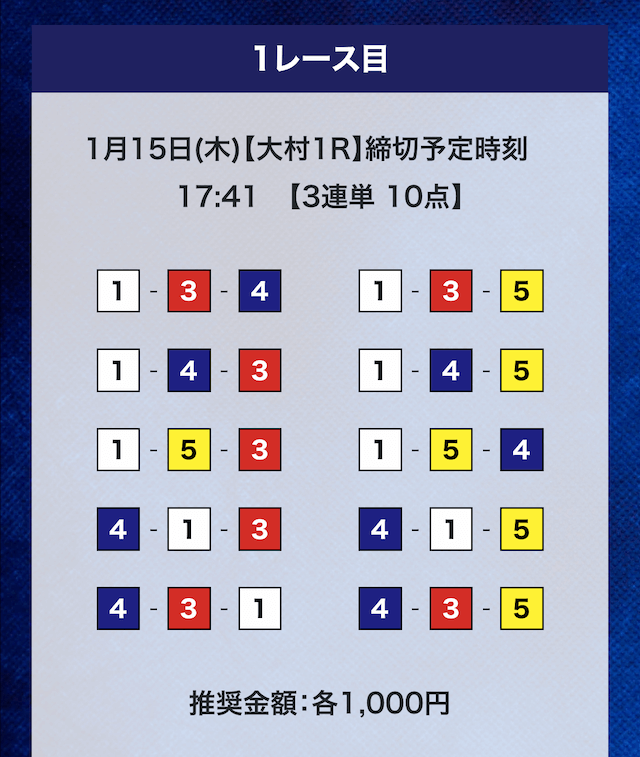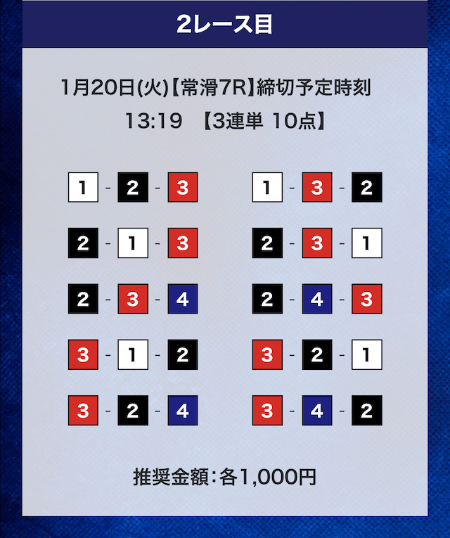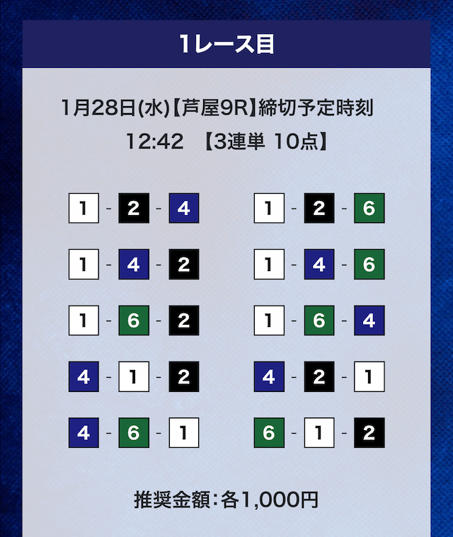 - 推奨舟券代:計10,000円(1点1,000円)