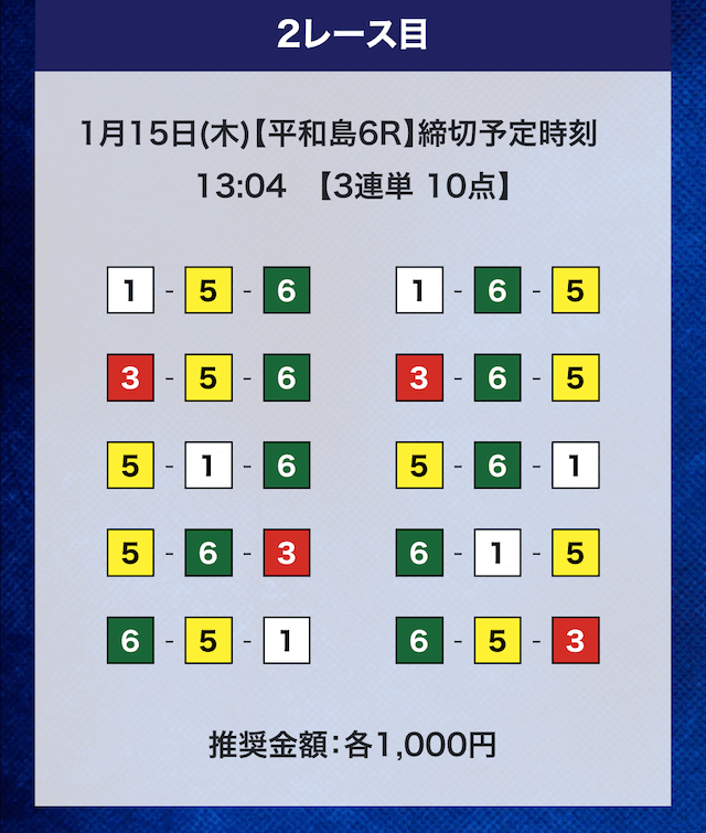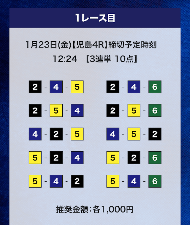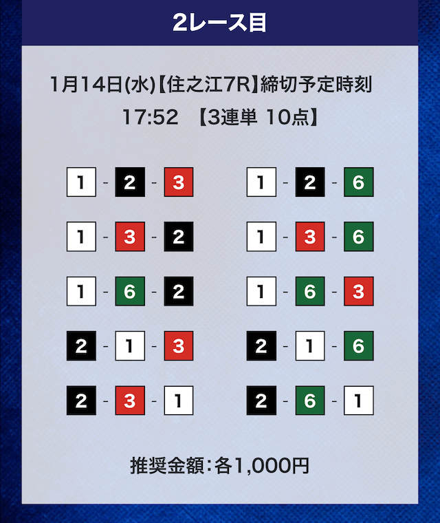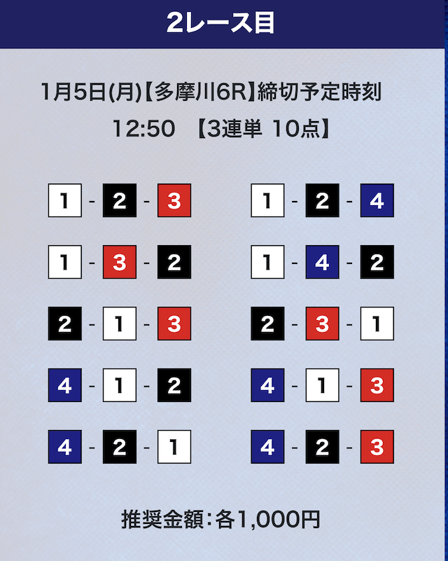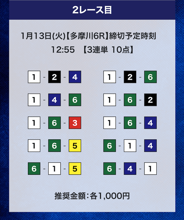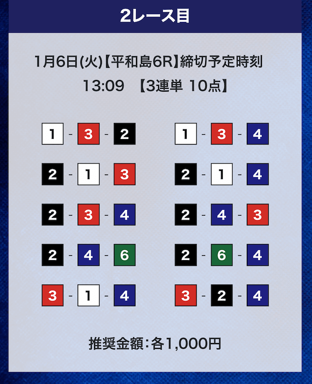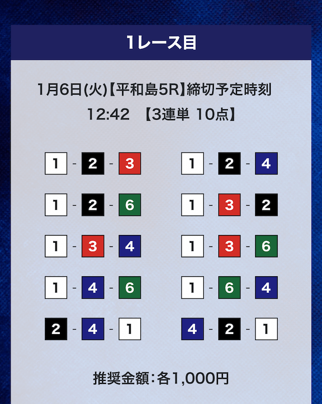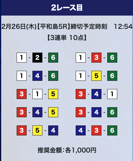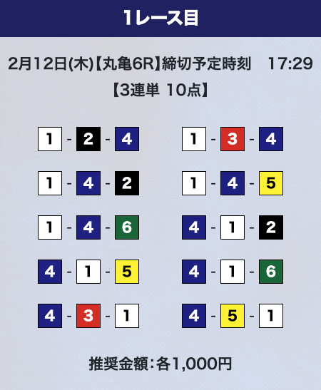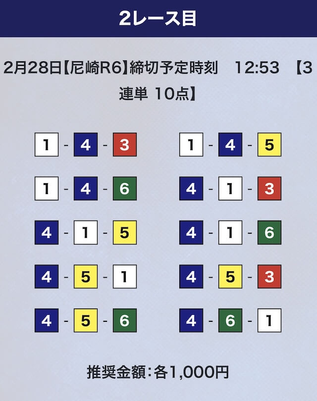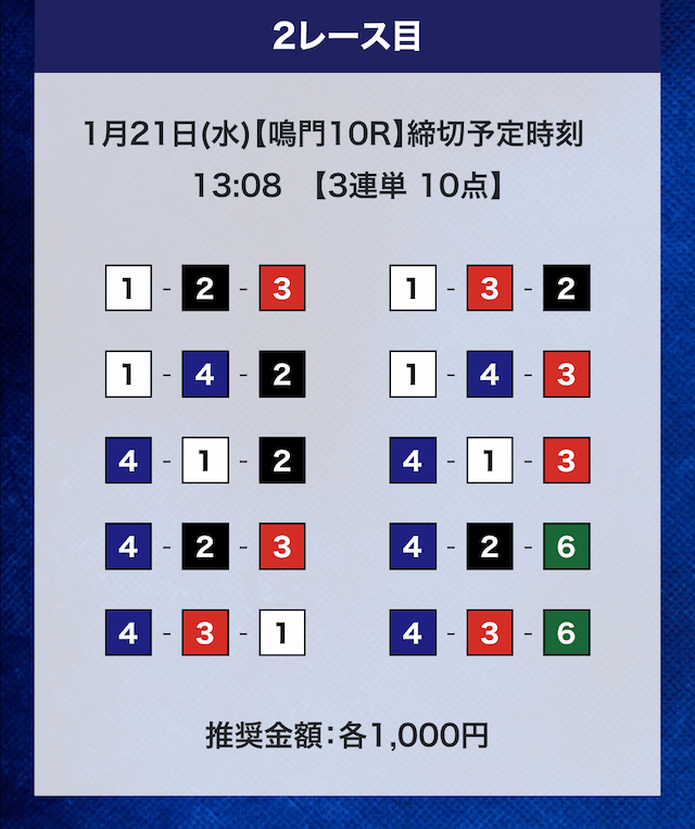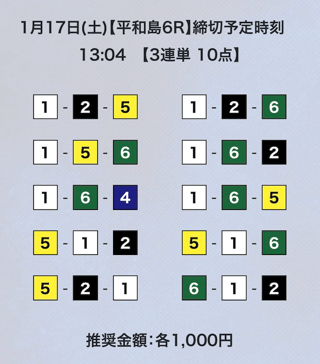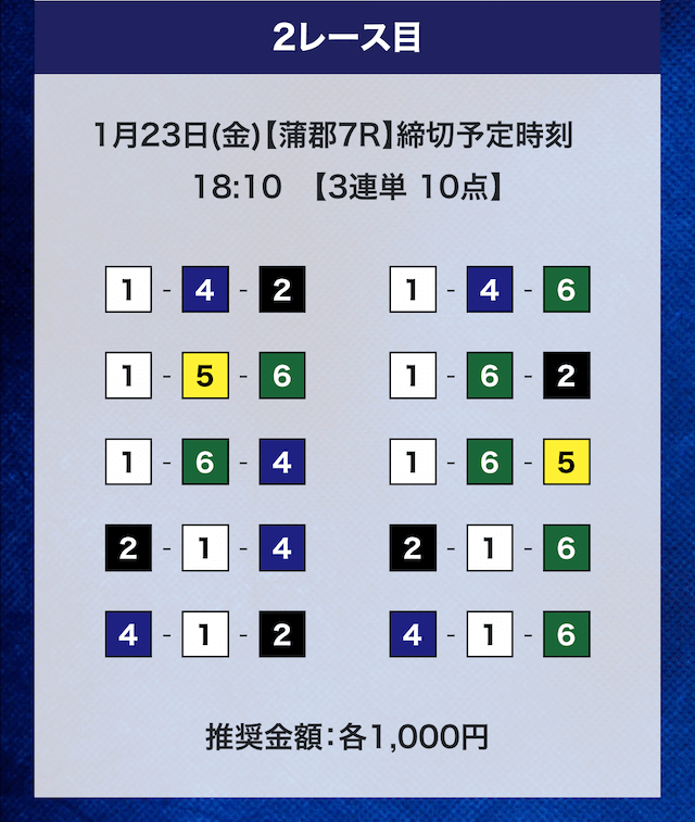 - 推奨舟券代:計10,000円(1点1,000円)