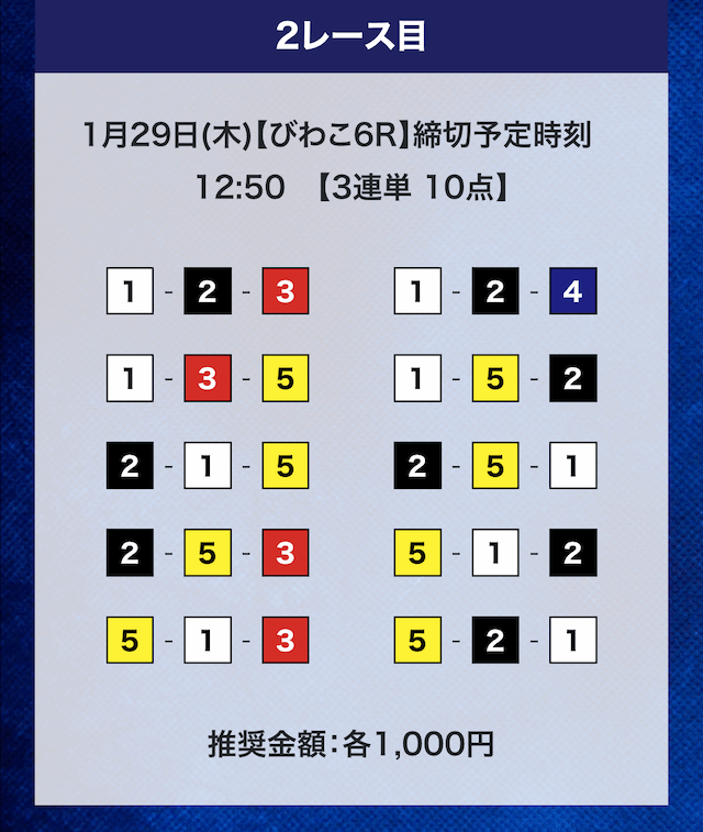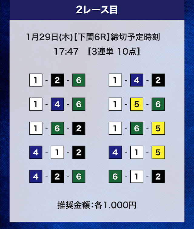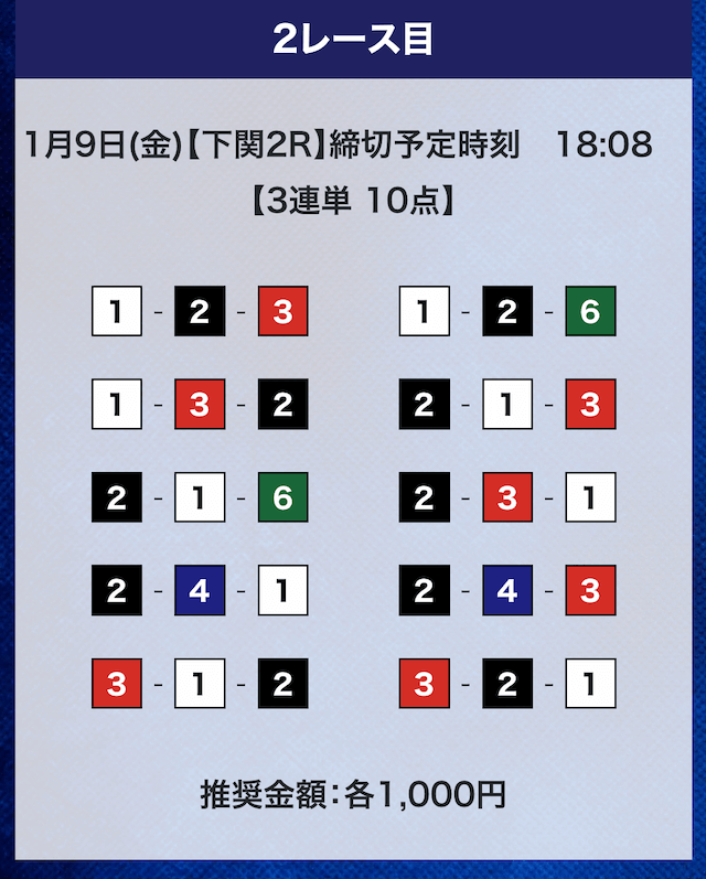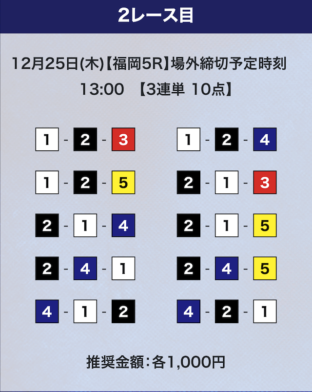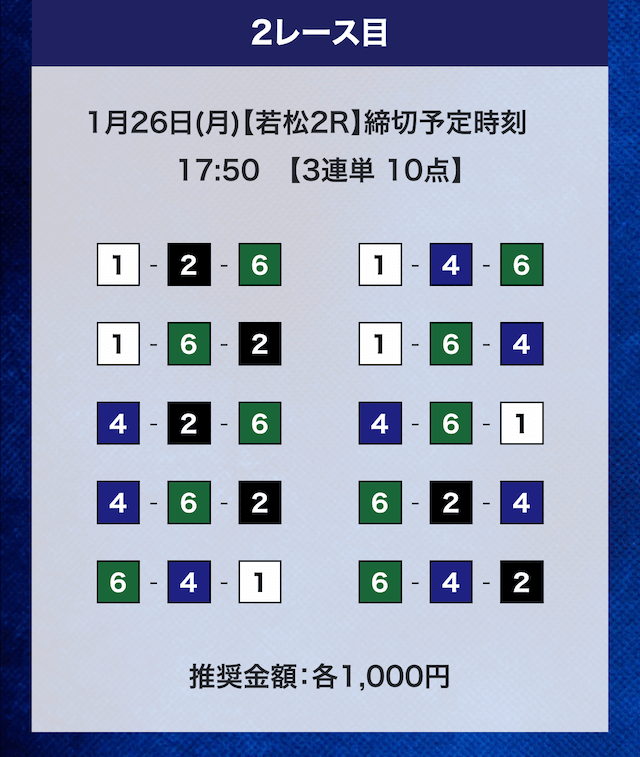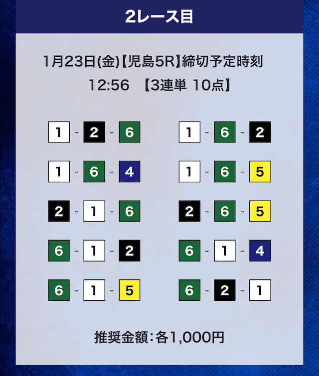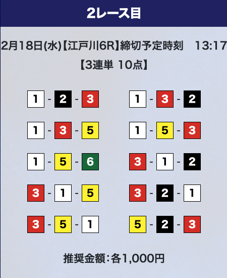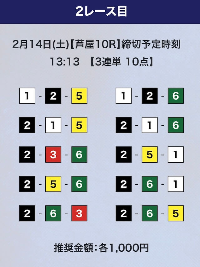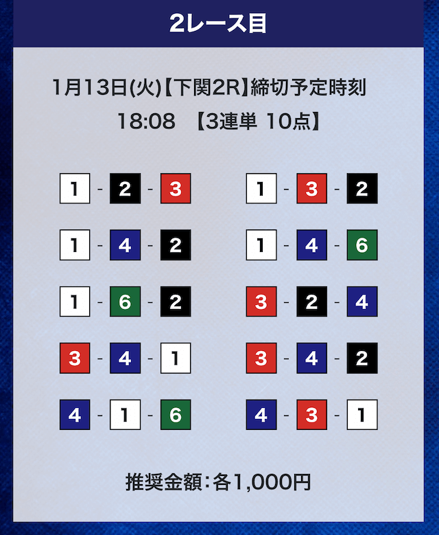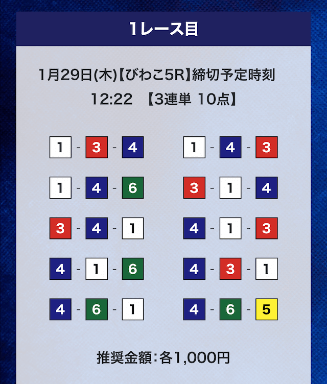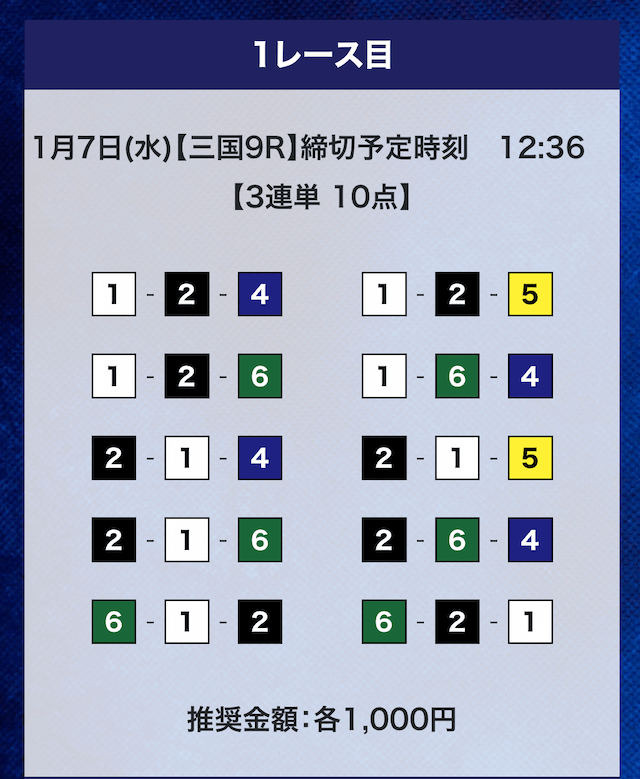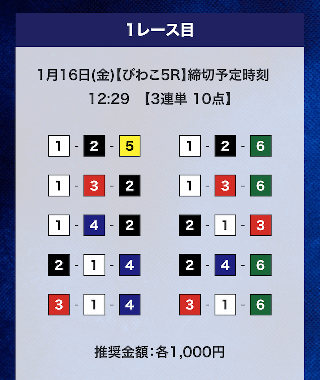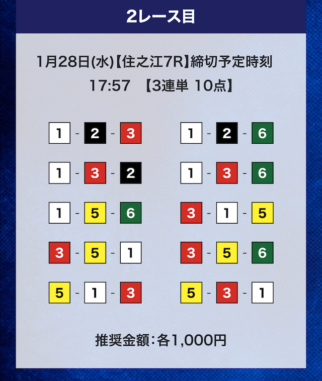 - 推奨舟券代:計10,000円(1点1,000円)
