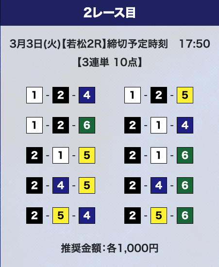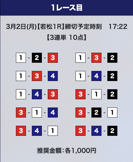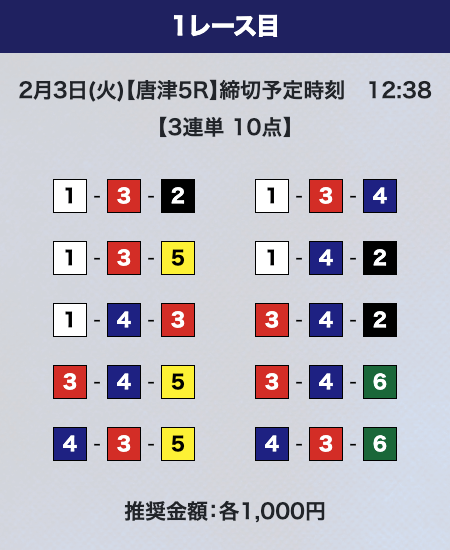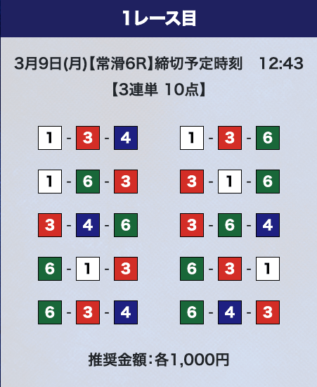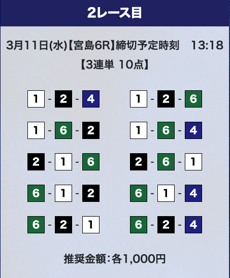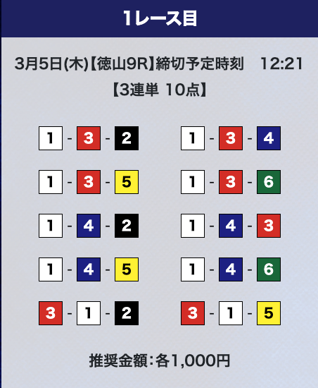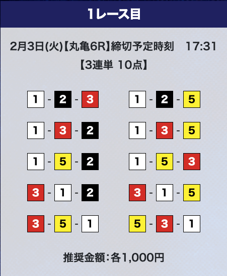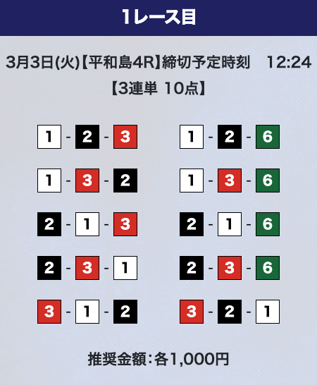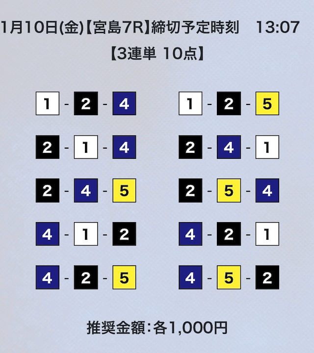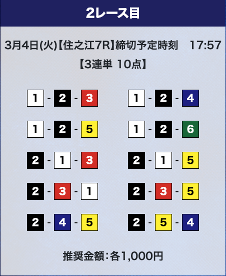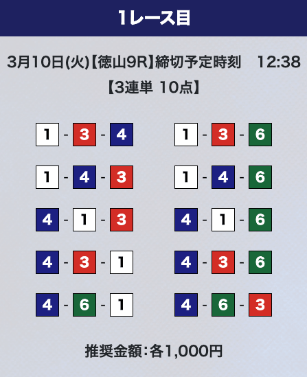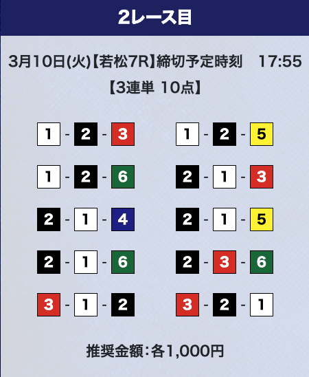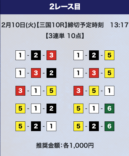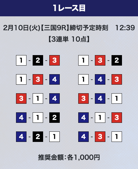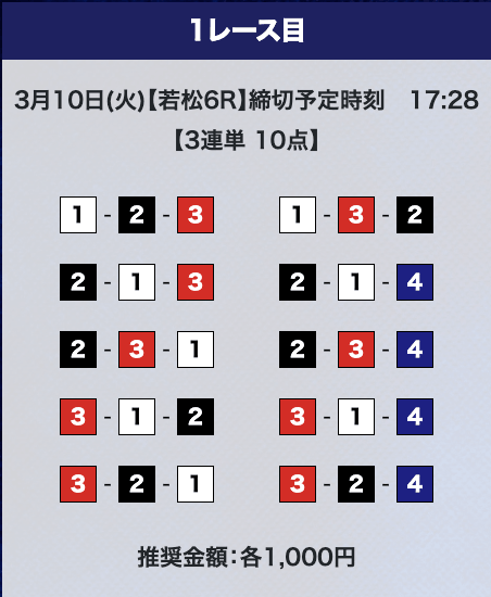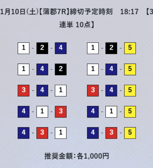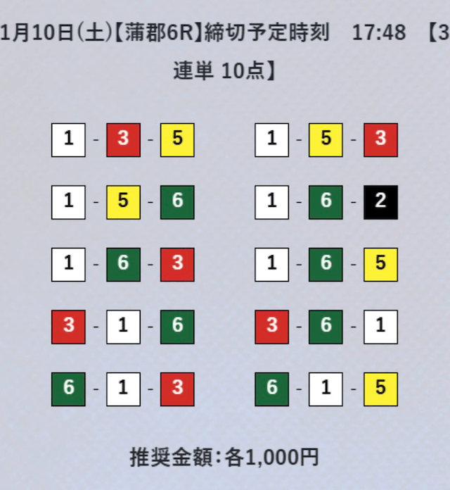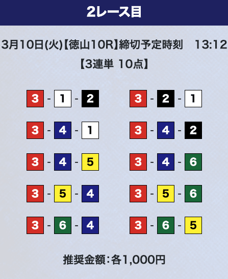 - 券種:3連単10点