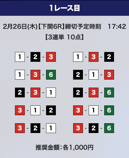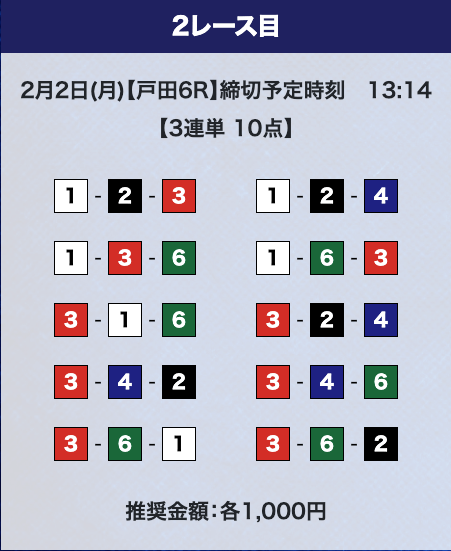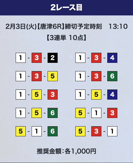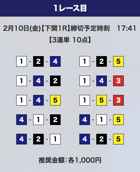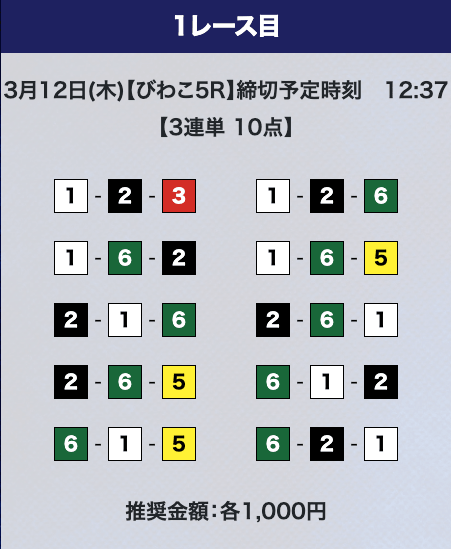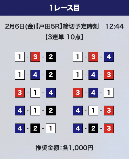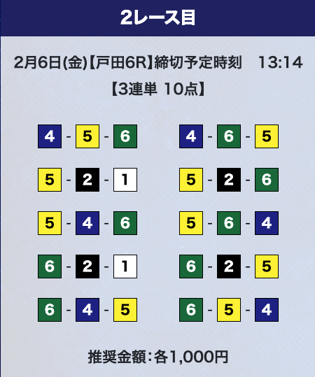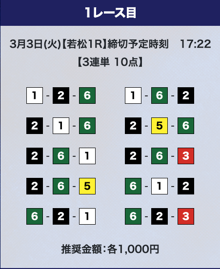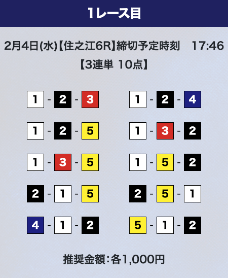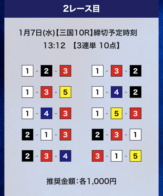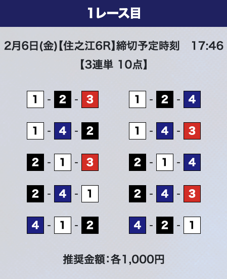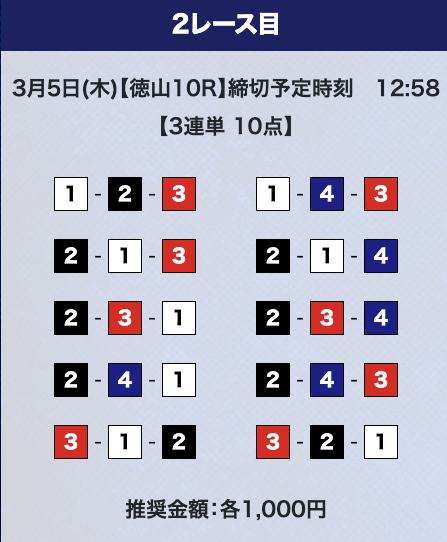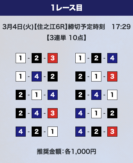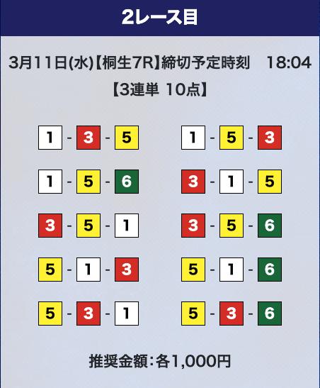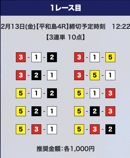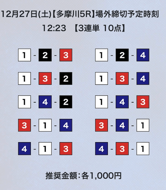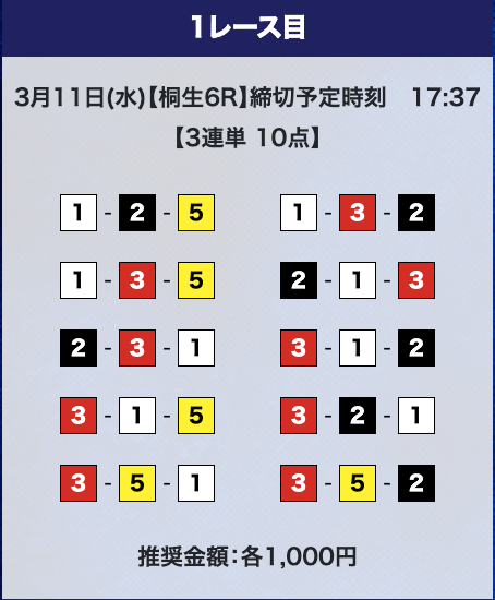 - 券種:3連単10点