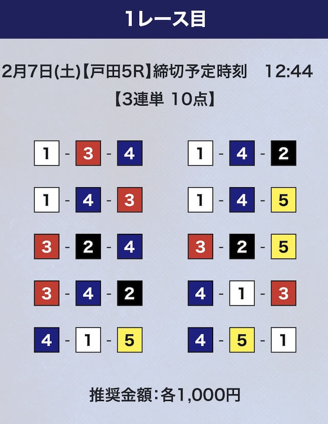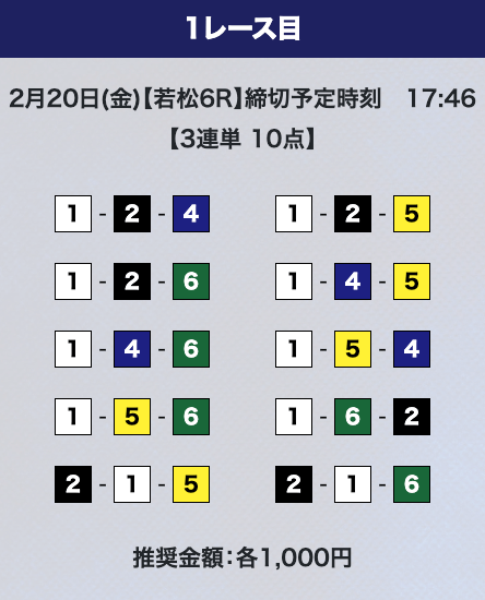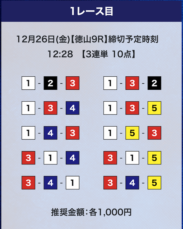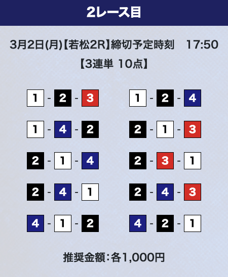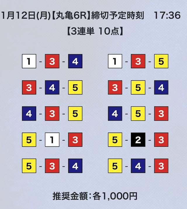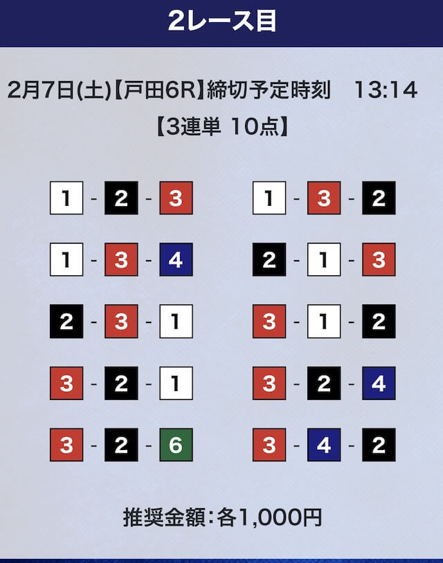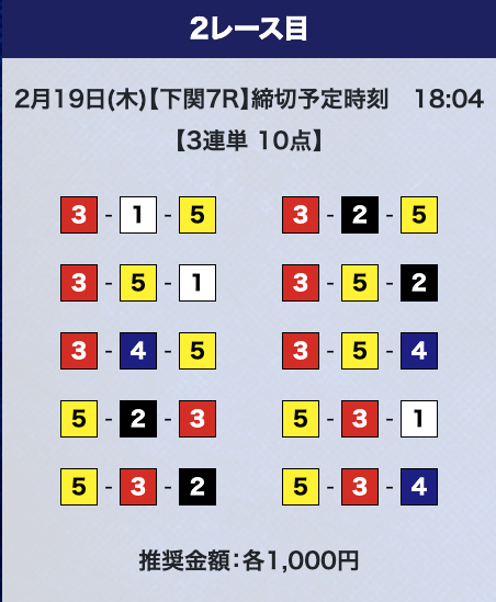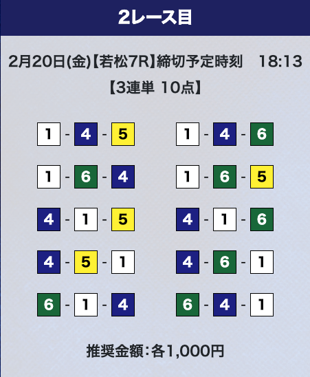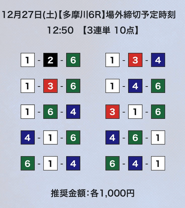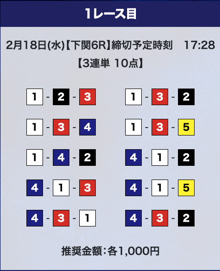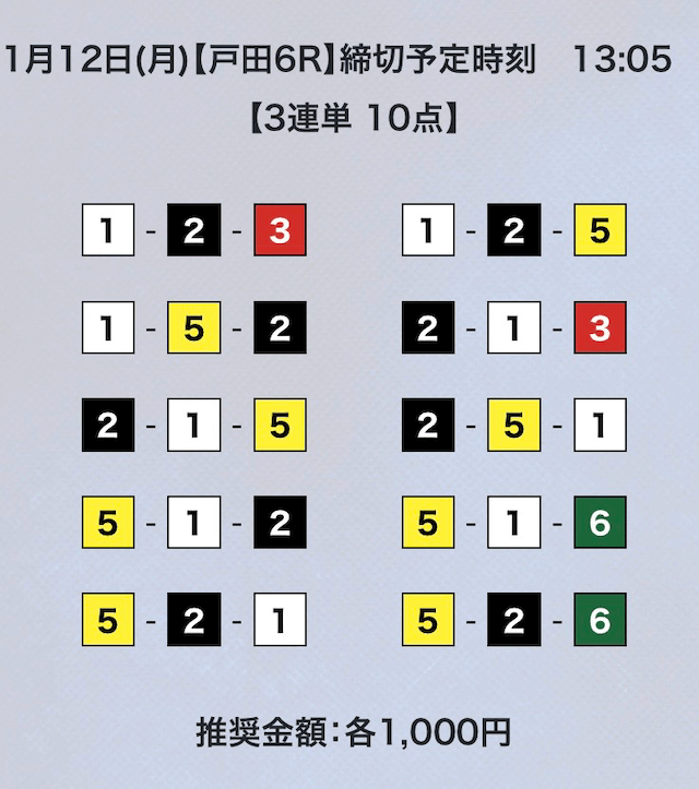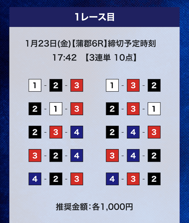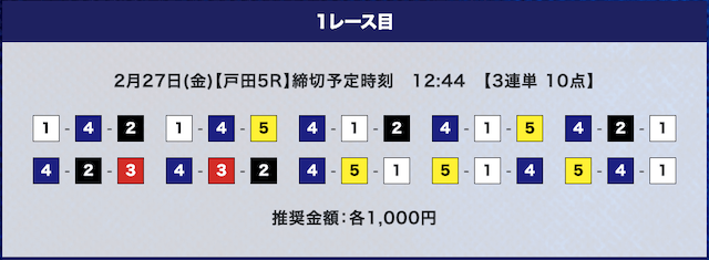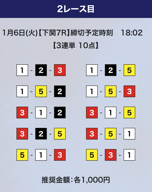 - 券種:3連単10点