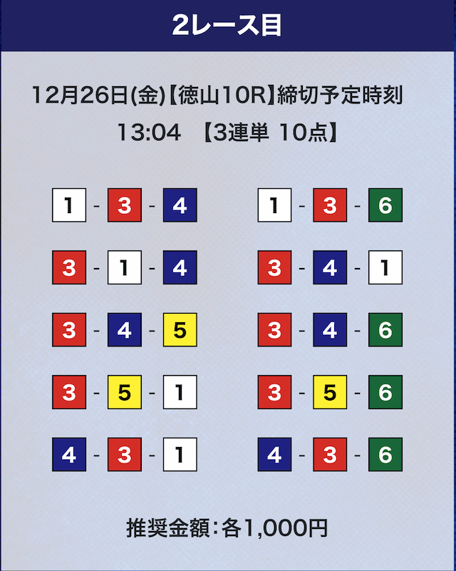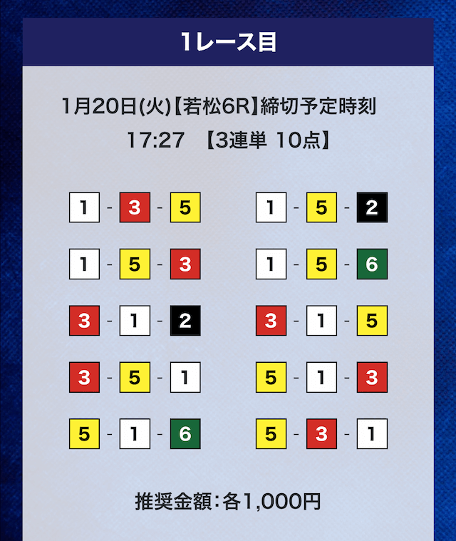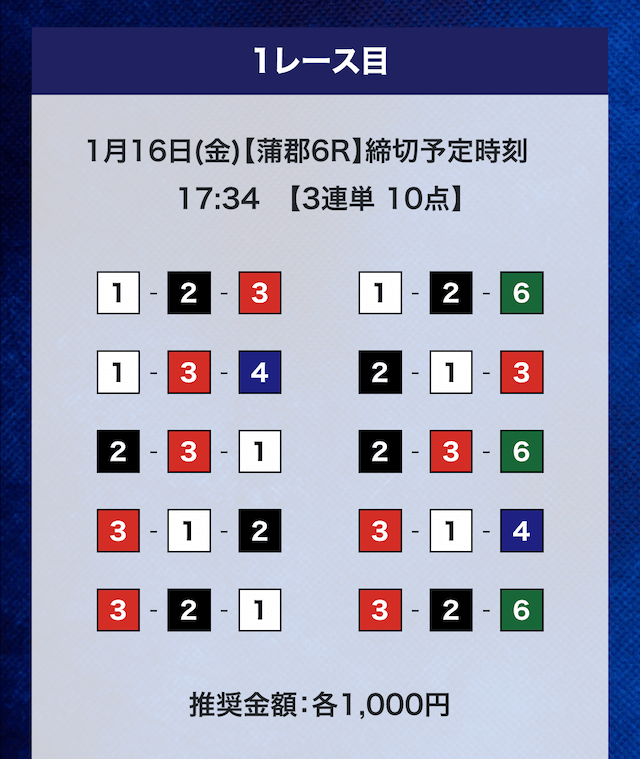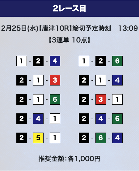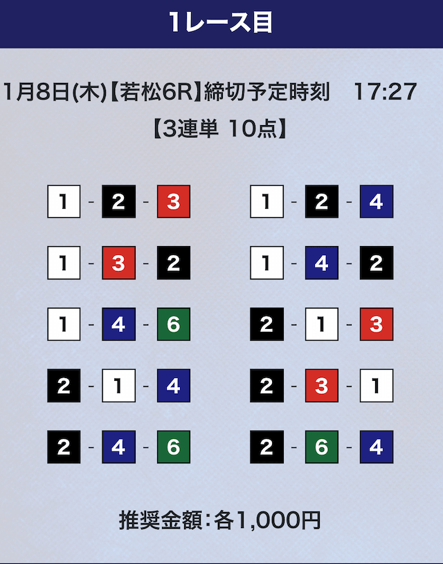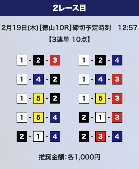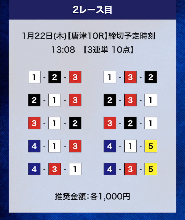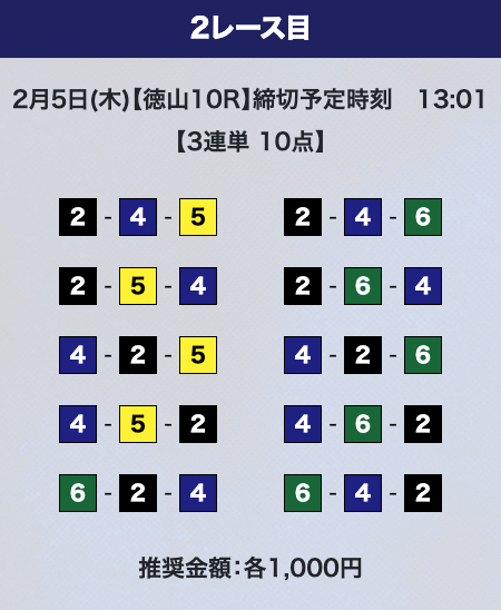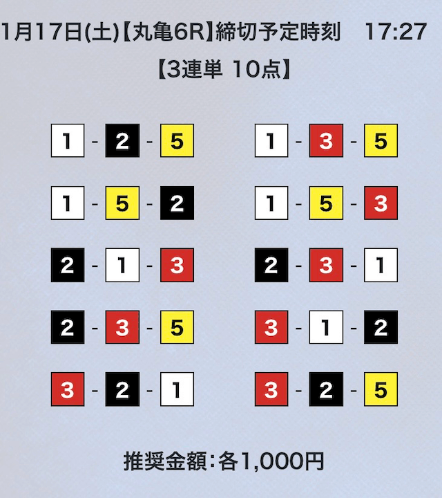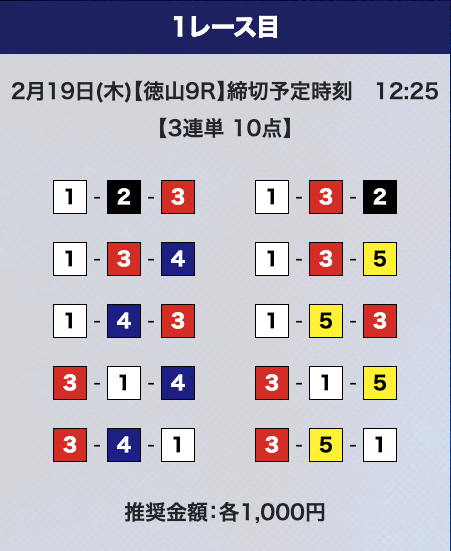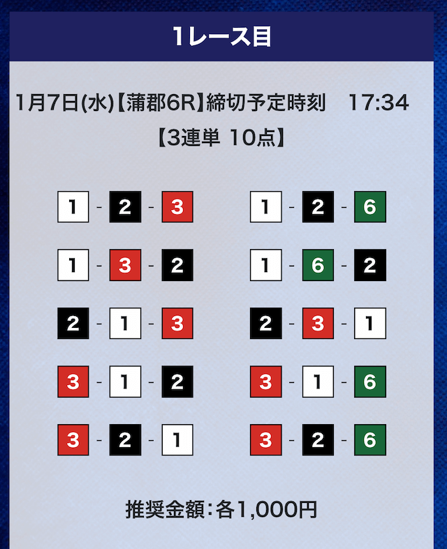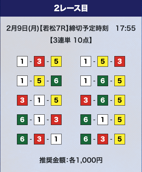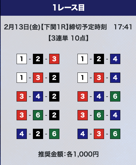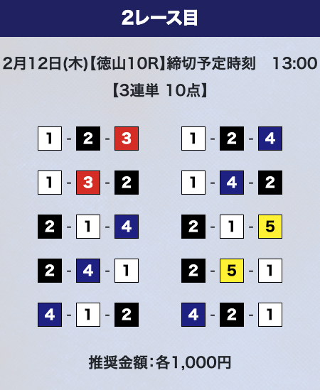 - 券種:3連単10点
