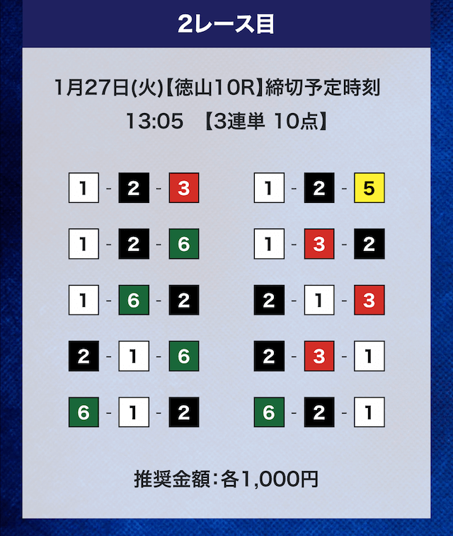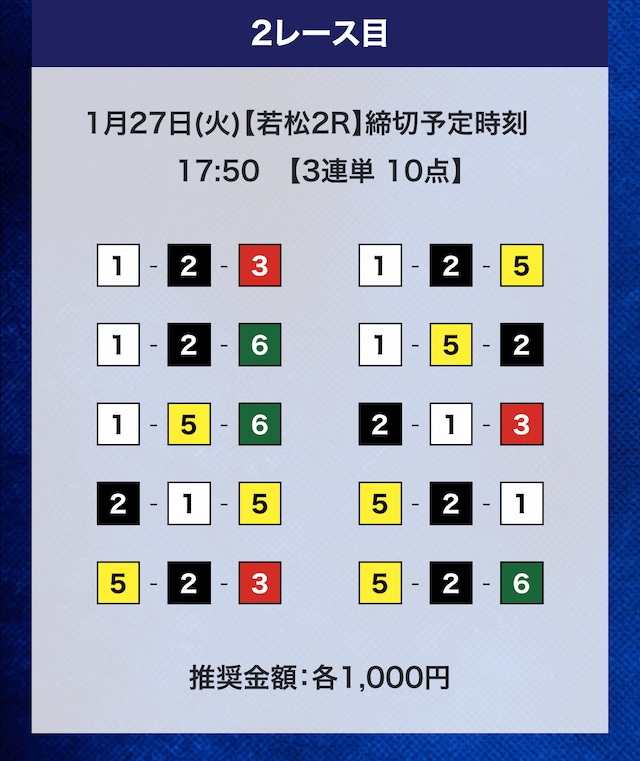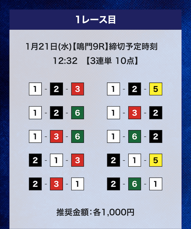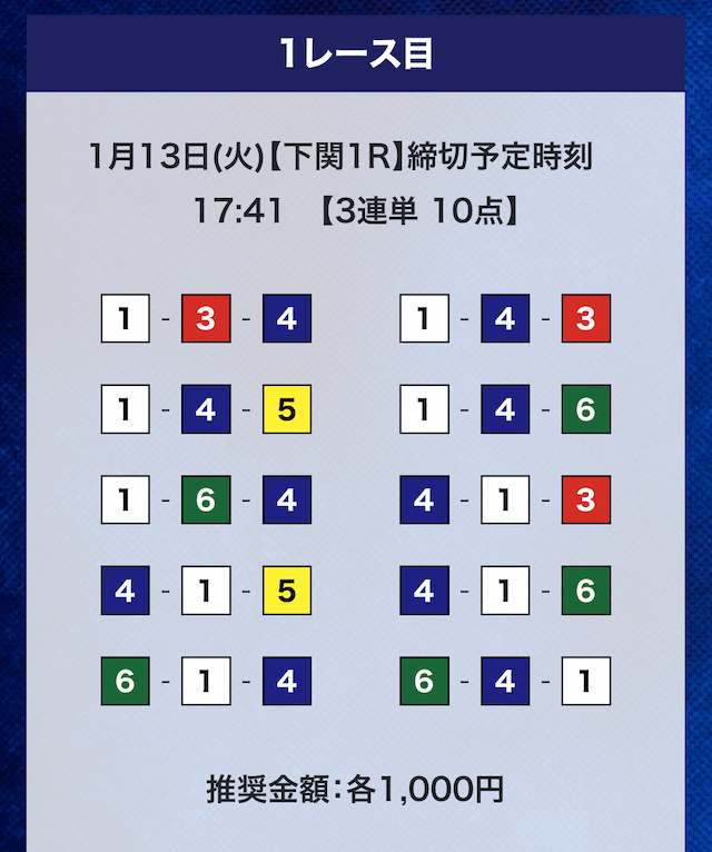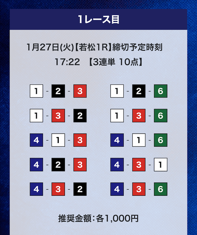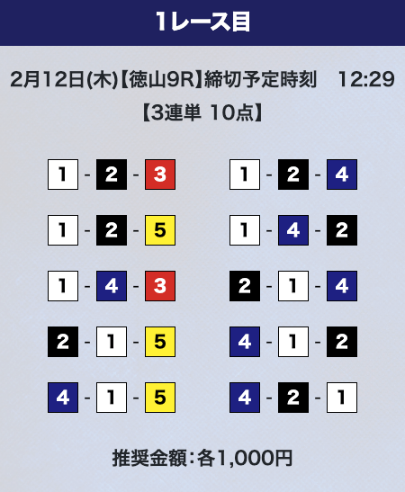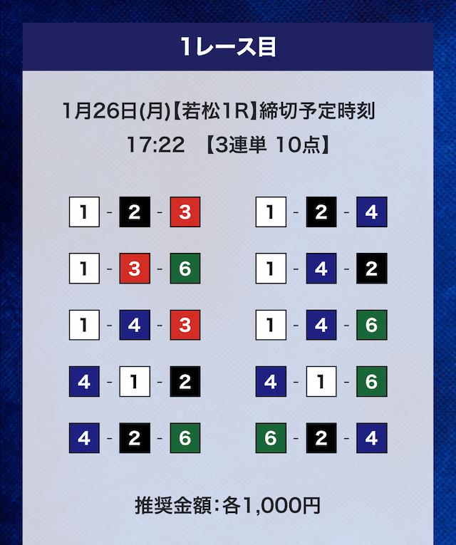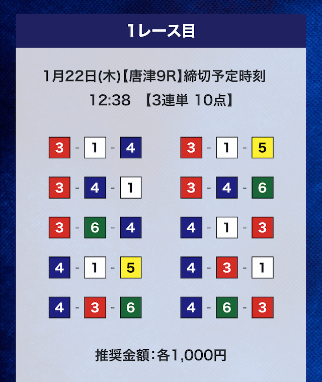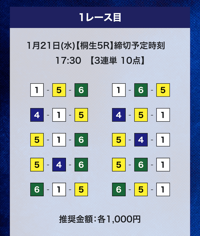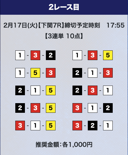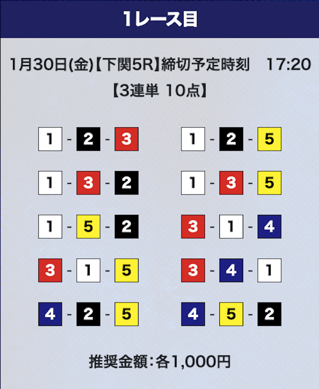 - 券種:3連単10点