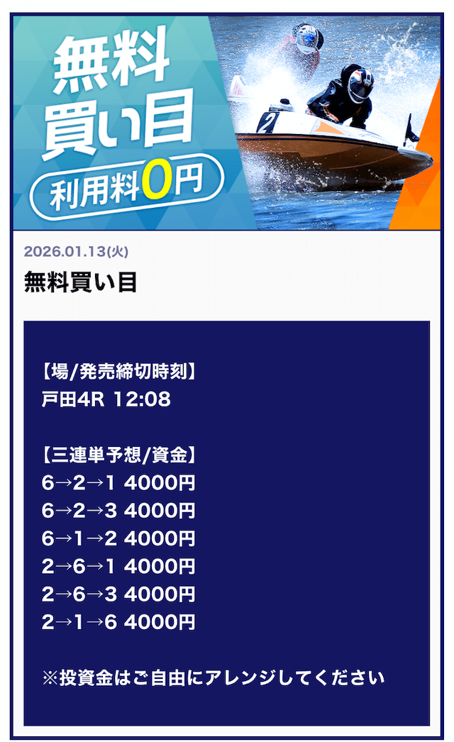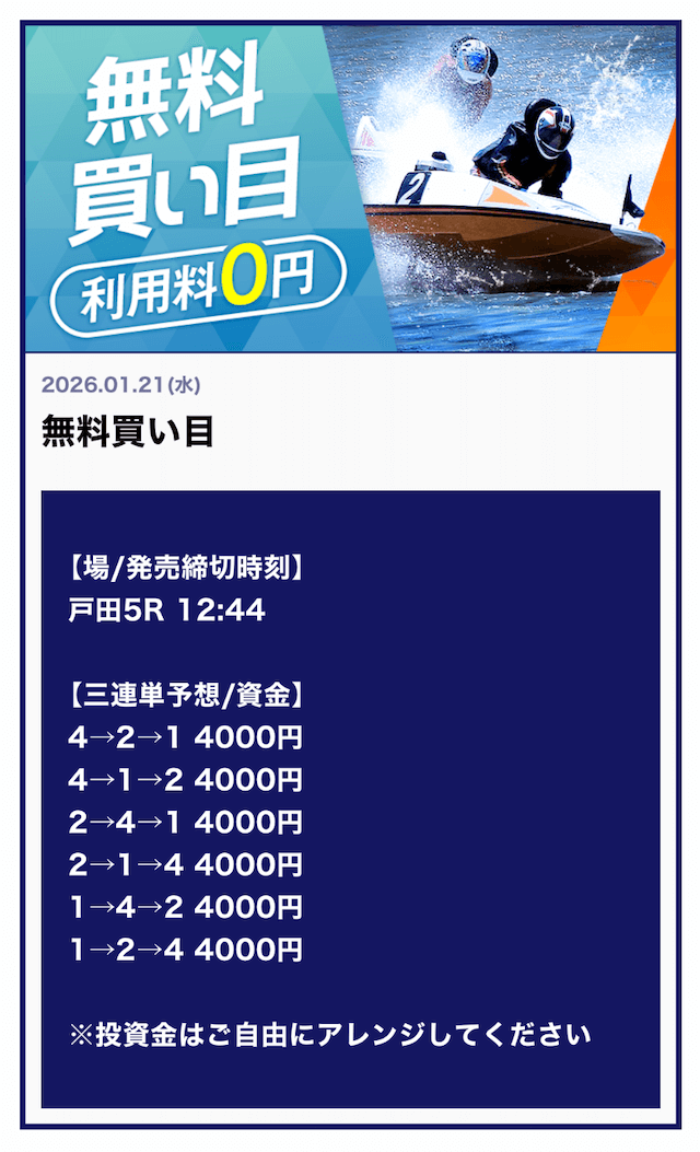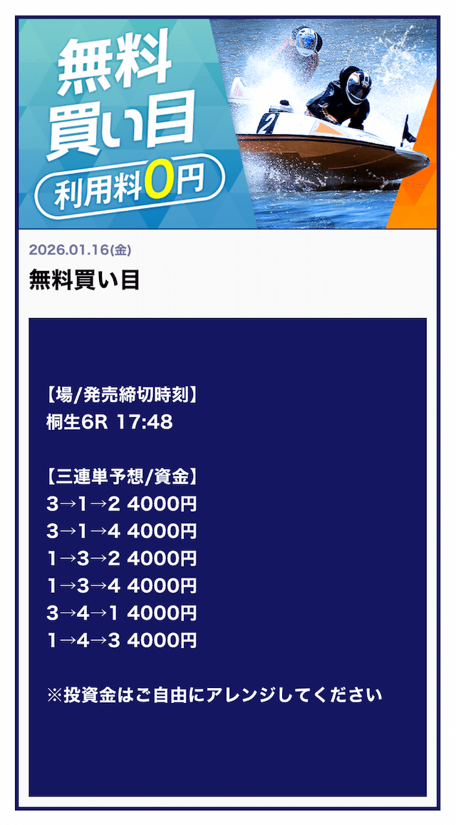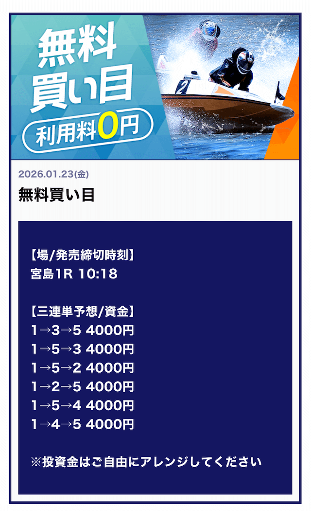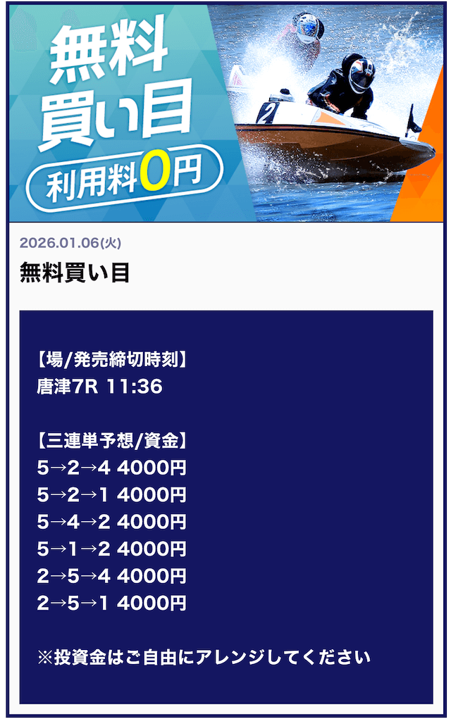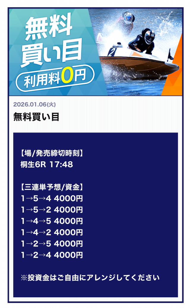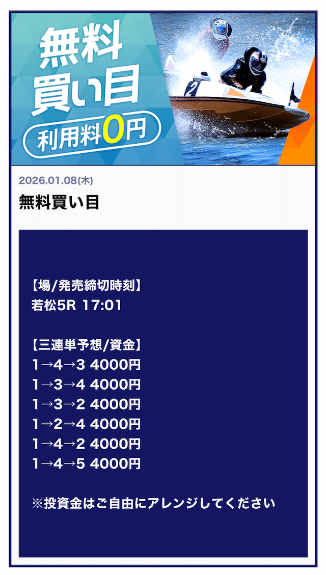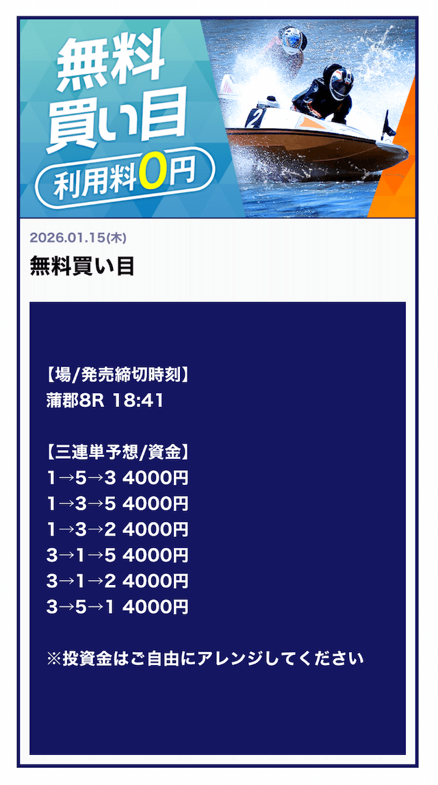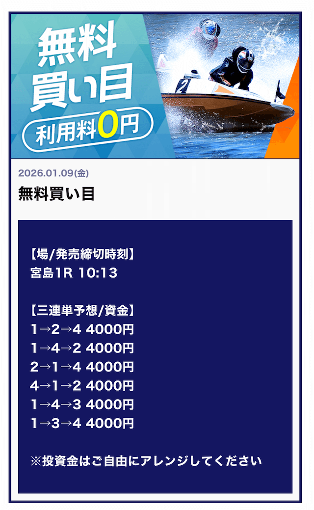 無料予想の的中率が想像以上に高くて驚いた。丸ノリするだけで普通に利益が残る日が何度もあって、「これ本当に無料でいいの?」という感覚だった。