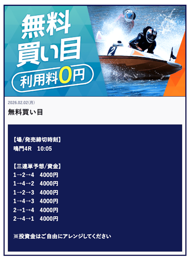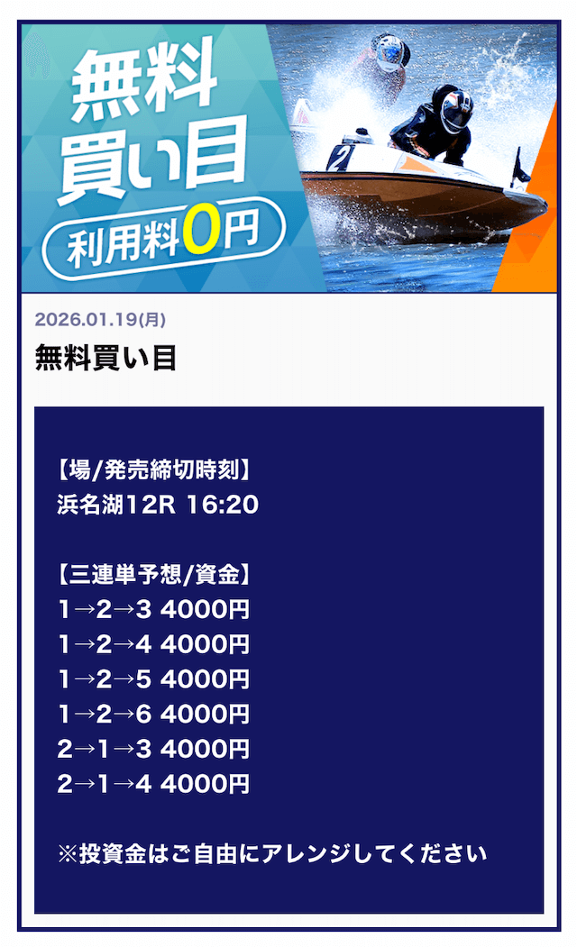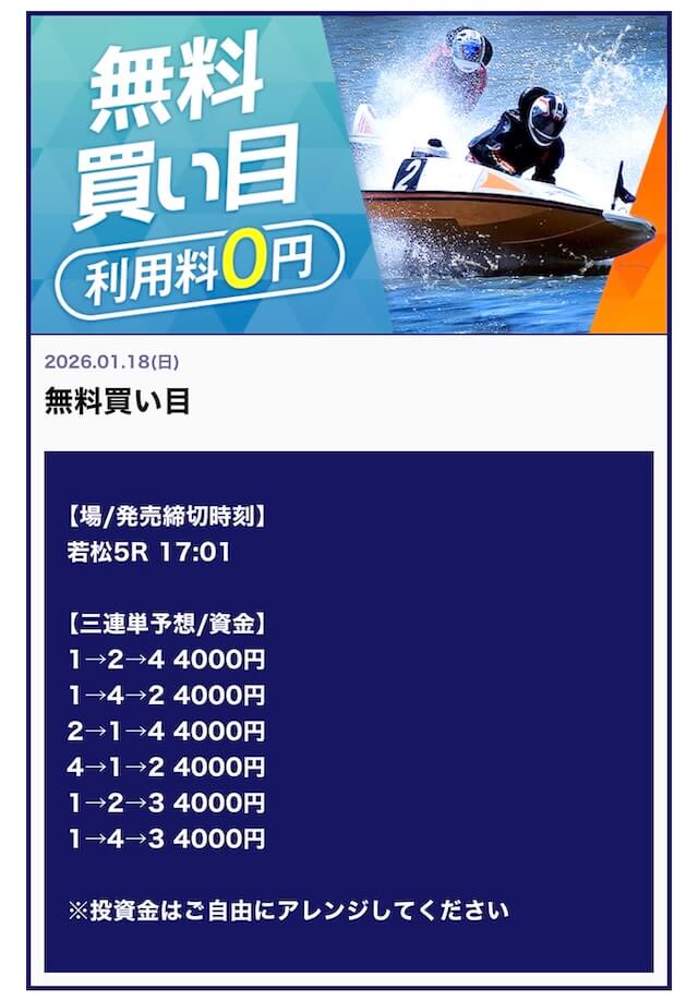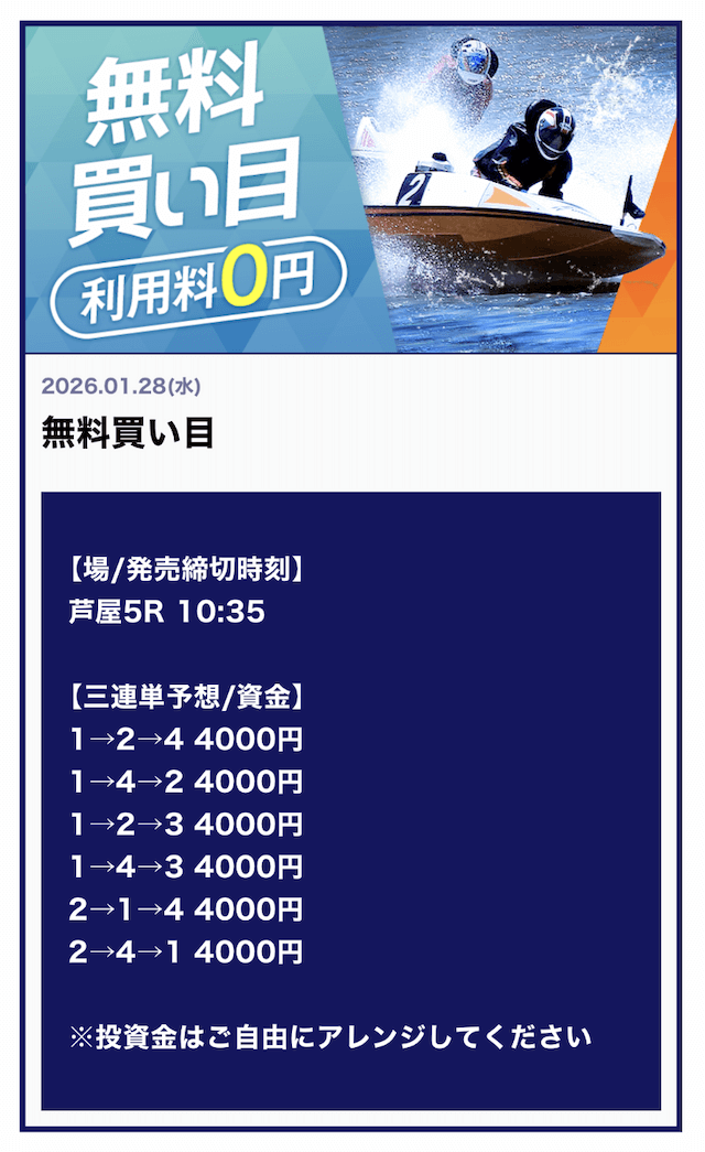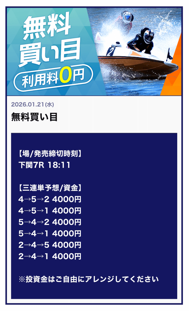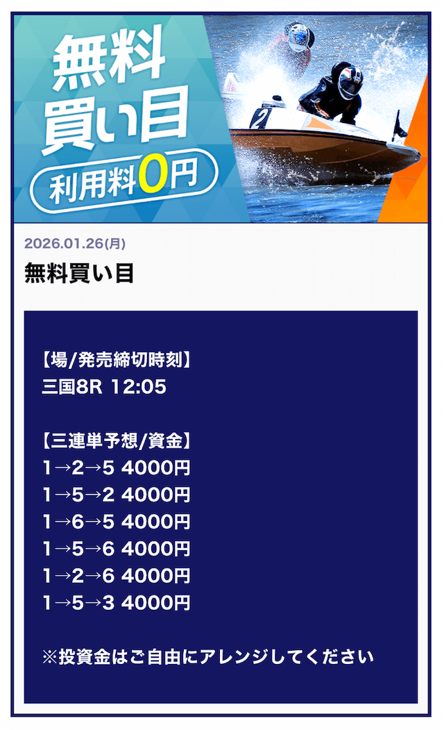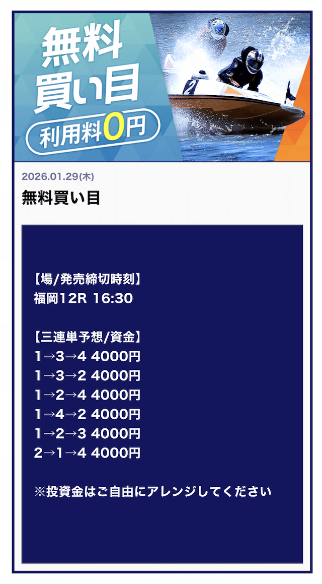 - 推奨通りに購入すると舟券代が割高(無料予想)