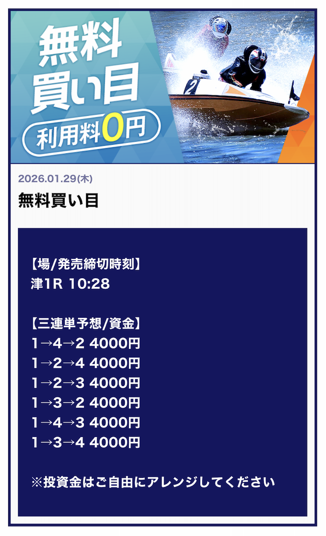 有料の初回限定プランが思った以上に強かった。俺が参加したのは「王の舟券」ってプランだから、大きく勝つ日も負ける日もあるが、トータルでは確実にプラス。