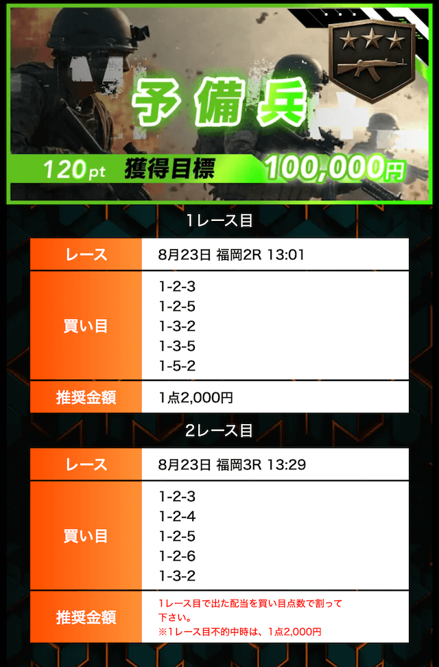 | 2025/8/23 予備兵 情報料金+舟券代 100,000円+20,000円 |