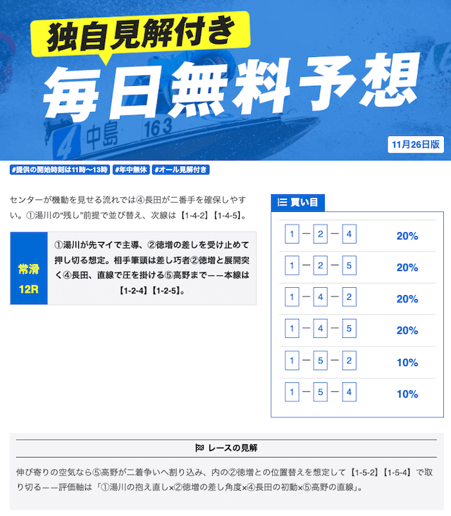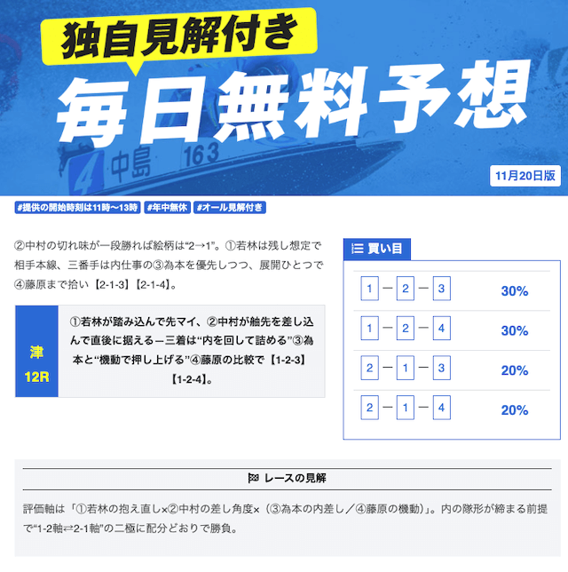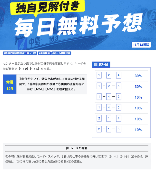 最後に、競艇予想novaの独自コンテンツをご紹介します。