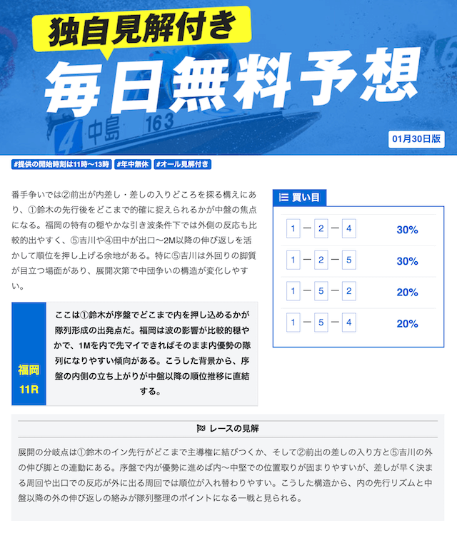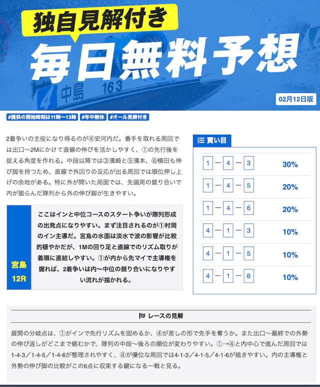 現状、多くの競艇予想サイトは12時までに予想が公開されます。